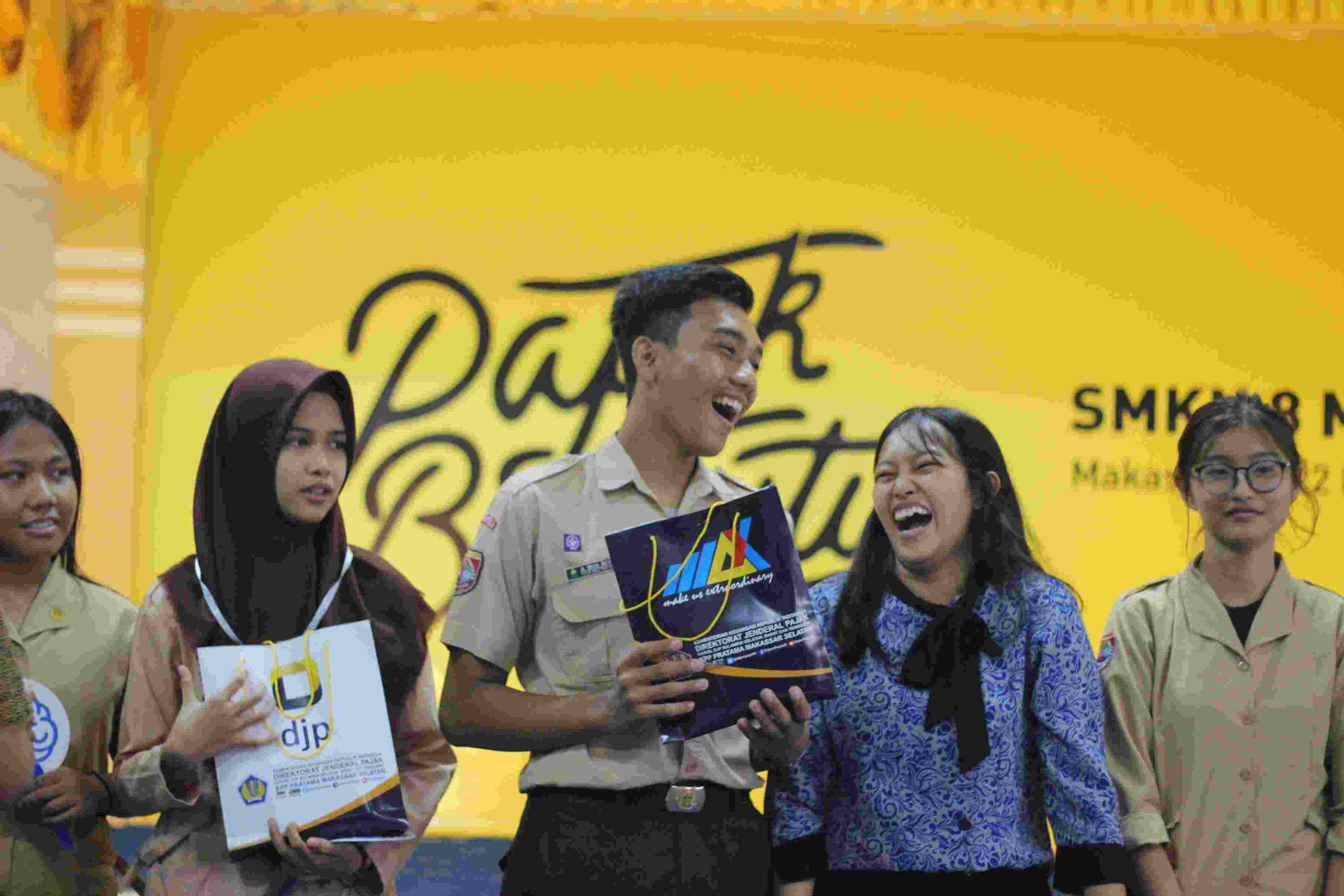 Pajak Bertutur yang diselenggarakan secara serentak oleh seluruh instansi vertikal Direktorat Jenderal Pajak di Indonesia ini diikuti oleh pelajar didampingi para guru dari SMKN 8 Makassar.