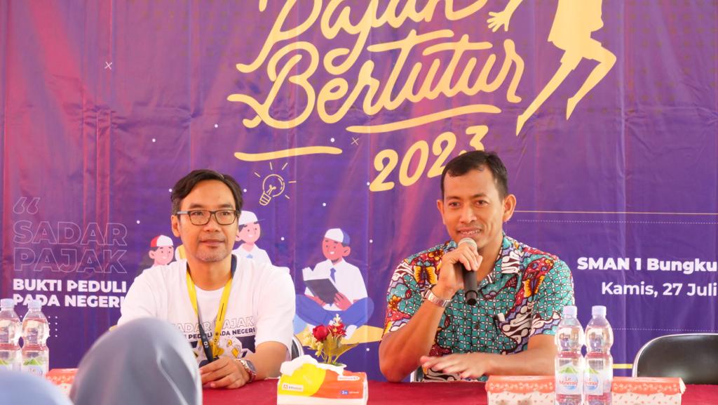 Kantor Pelayanan, Penyuluhan, dan Konsultasi Perpajakan (KP2KP) Bungku kembali melakukan edukasi perpajakan kepada generasi muda melalui kegiatan Pajak Bertutur 2023. Kegiatan dilaksanakan di SMA Negeri (SMAN) 1 Bungku, Kab. Morowali (Kamis, 27/7). Kegiatan kali ini diikuti oleh siswa dari kelas X, XI, maupun XII yang merupakan pengurus Organisasi Siswa Intra Sekolah (OSIS) dari SMAN 1 Bungku.