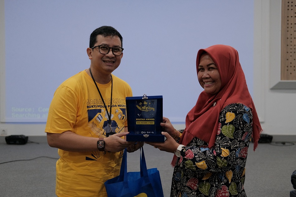 Acara diakhiri dengan pemberian Pelakat kepada SMAN 05 Tebo sebagai bentuk terima kasih dari KP2KP Rimbo Bujang atas kerja samanya pada Pajak Bertutur 2023 ini.