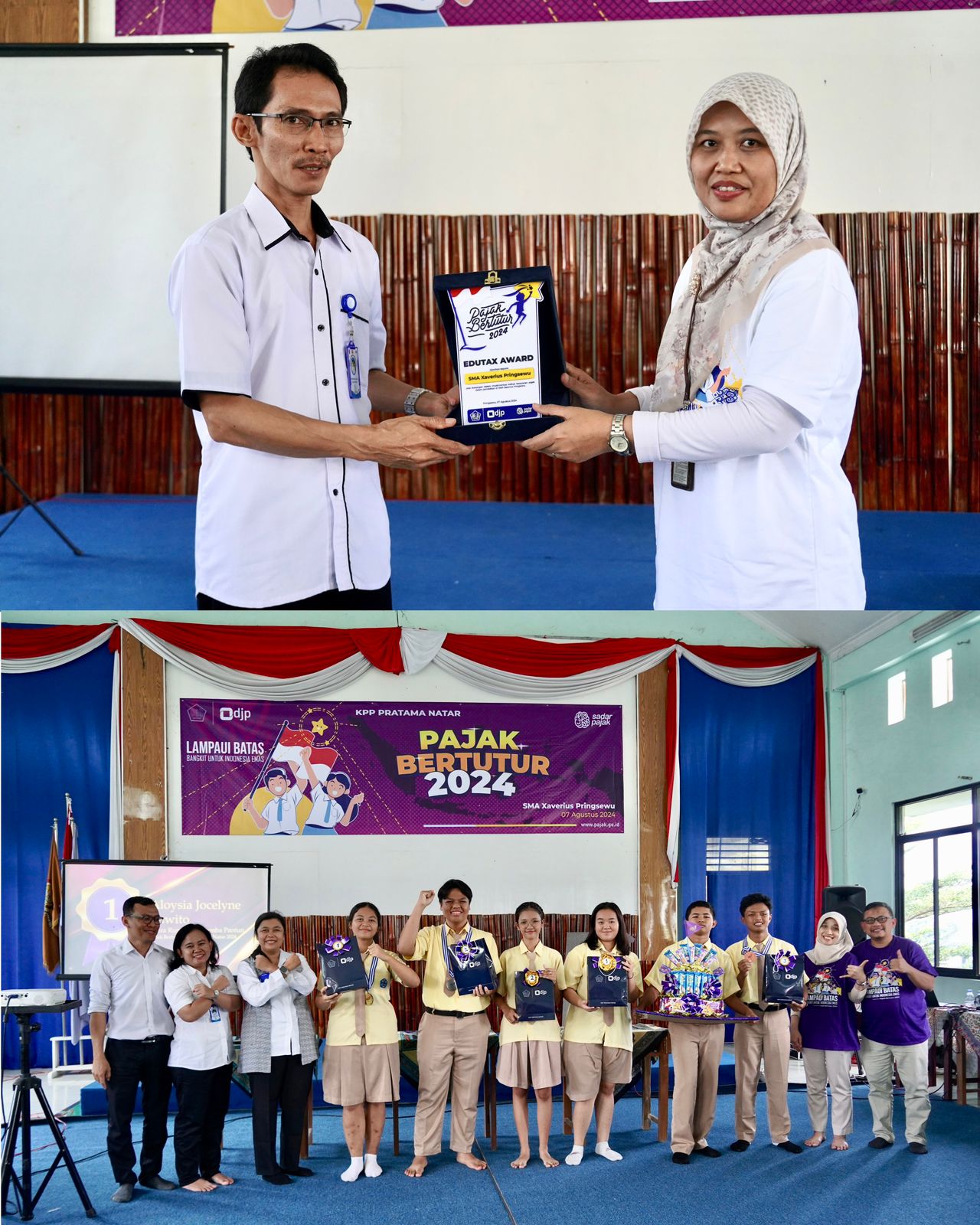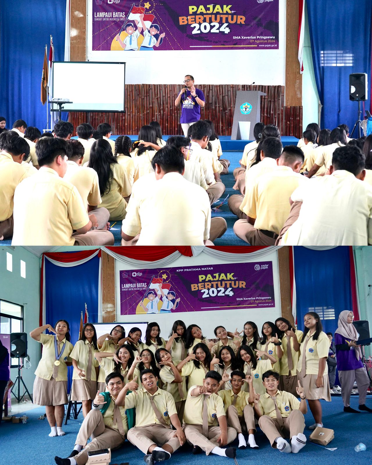 Kantor Pajak Pratama Natar menggelar kegiatan Pajak Bertutur 2024 (Patur 2024) dengan tema "Lampaui Batas, Bangkit Untuk Indonesia Emas" di SMA Xaverius Pringsewu, Jl. Mawar I No.32, Kabupaten Pringsewu (Rabu, 7/8). Kegiatan ini diikuti oleh 80 siswa dari berbagai tingkat kelas dan merupakan bagian dari pelaksanaan serentak di seluruh unit kerja Direktorat Jenderal Pajak (DJP) Kementerian Keuangan Republik Indonesia di seluruh Nusantara.