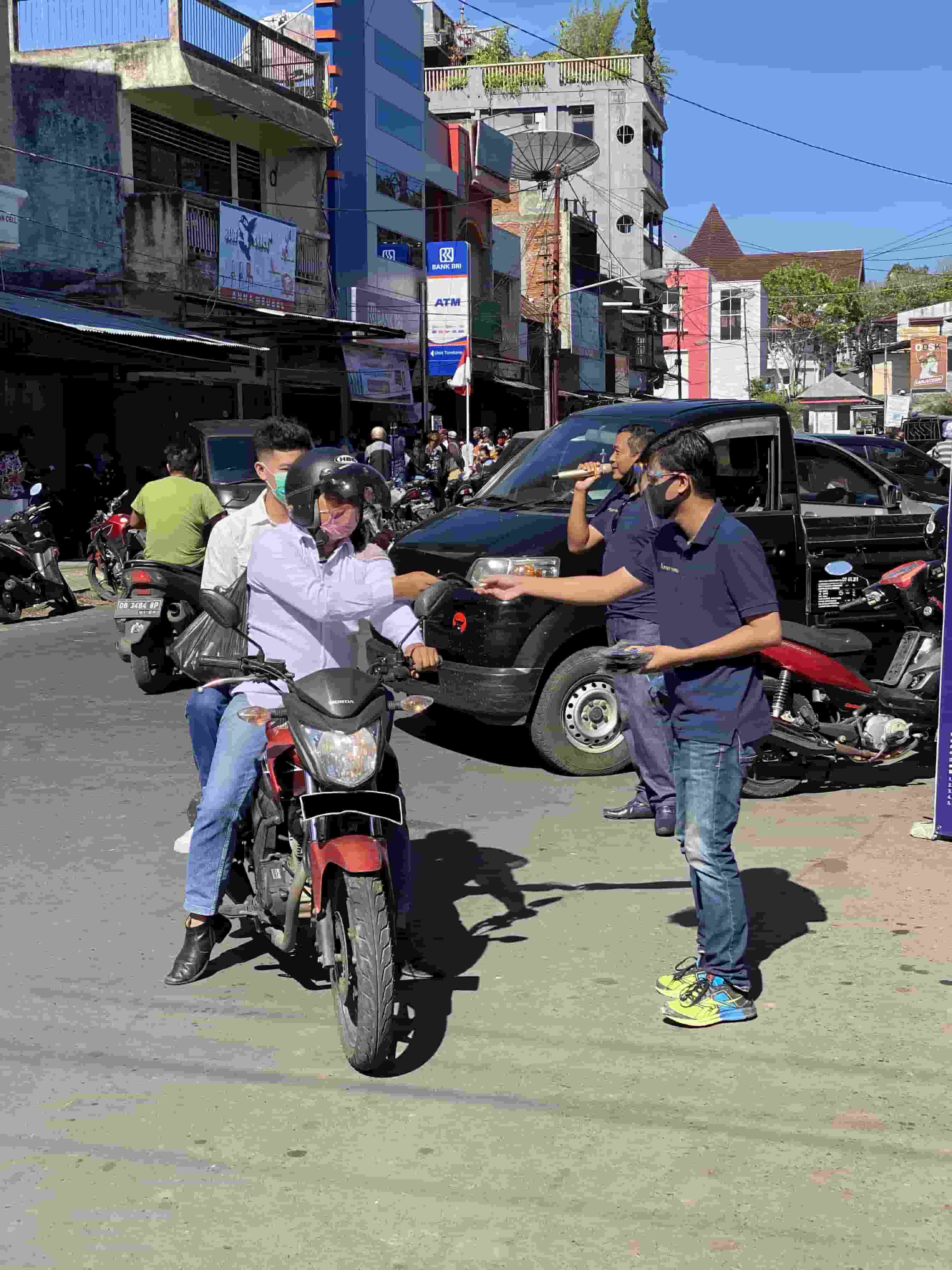 Kegiatan ini bertujuan untuk mensosialisasikan bahwa pentingnya memakai masker di tengah Pandemi agar terhindar dari virus Covid-19, tetap menjaga jarak, dan hindari kerumunan orang banyak. Kegiatan pembagian masker ini dilaksanakan dengan tetap memperhatikan protokol kesehatan Covid-19.