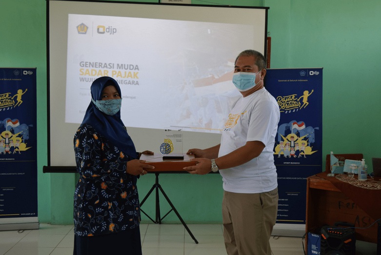 Kantor Pelayanan, Penyuluhan, dan Konsultasi Perpajakan (KP2KP) Bumiayu bersama dengan Madrasah Aliyah (MA) Assalafiyah Luwungragi Brebes menggelar kegiatan Pajak Bertutur tahun 2021 di ruang kelas Madrasah Aliyah (MA) Assalafiyah Luwungragi, Brebes (Rabu, 25/8).