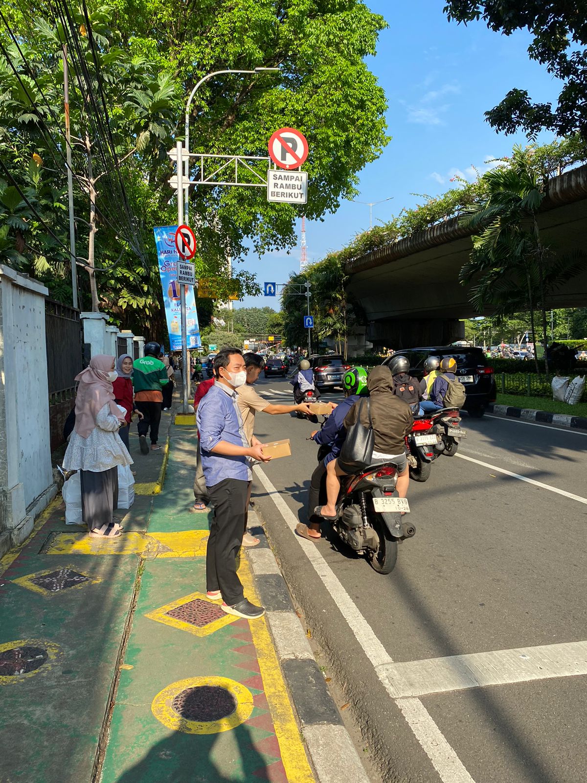 Dalam kesempatan tersebut, takjil dibagikan kepada pengandar ojek daring, sopir angkutan umum, dan pengguna jalan lainnya. Proses pendistribusian takjil tidak hanya dilakukan oleh para pegawai muslim KPP Badora, melainkan juga pegawai nonmuslim, Pegawai Pemerintah Non Pegawai Negeri (PPNPN), dan petugas Satpam Kompleks Pajak Kalibata.