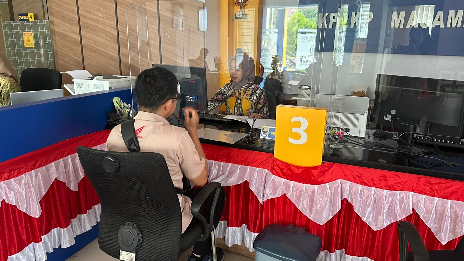 Kantor Pelayanan, Penyuluhan, dan Konsultasi Perpajakan (KP2KP) Masamba menerima kedatangan salah satu direktur sebuah perusahaan sektor perdagangan besar mobil baru yang merupakan Pengusaha Kena Pajak (PKP) di Tempat Pelayanan Terpadu (TPT) KP2KP Masamba (Rabu, 2/10). Tujuan kunjungan AS, direktur PT AI, adalah untuk berkontultasi terkait sertifikat elektronik yang kadaluarsa.