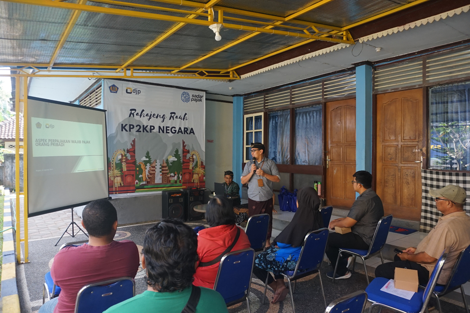 Kantor Pelayanan, Penyuluhan, dan Konsultasi Perpajakan (KP2KP) Negara melaksanakan kegiatan Pasraman Pajak Garden Tax Education di halaman samping gedung KP2KP Negara, Jembrana (Kamis, 24/8).