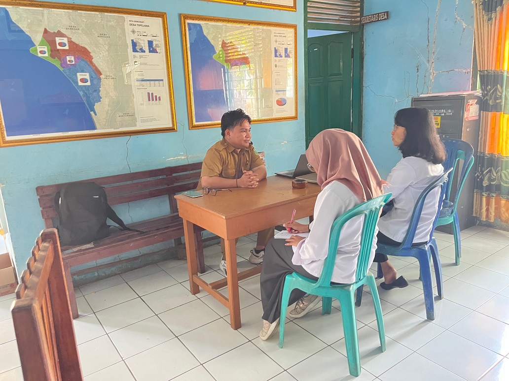 Kepala KP2KP Takalar Creschenthum Srimariastuti Boroh bersama tim bertemu dengan Sekretaris Desa Topejawa Sutrisman. Tim KP2KP Takalar menyampaikan maksud kunjungan dalam rangka monitoring pemenuhan kewajiban perpajakan desa.