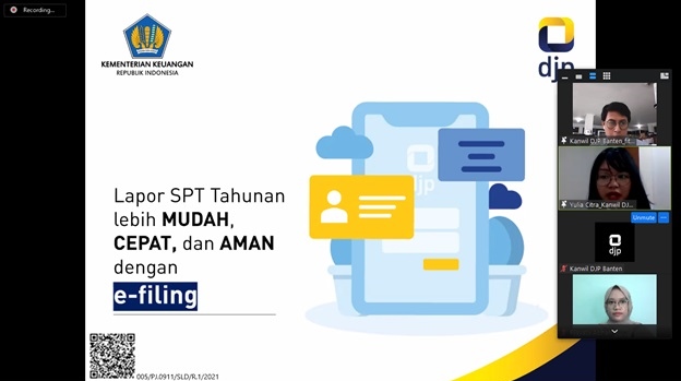 Kantor Wilayah Direktorat Jenderal Pajak (Kanwil DJP) Banten mengadakan pelatihan tata cara pelaporan SPT Tahunan kepada 40 mahasiswa calon relawan pajak dari UIN Syarih Hidayatullah Jakarta secara daring (Rabu, 24/2).