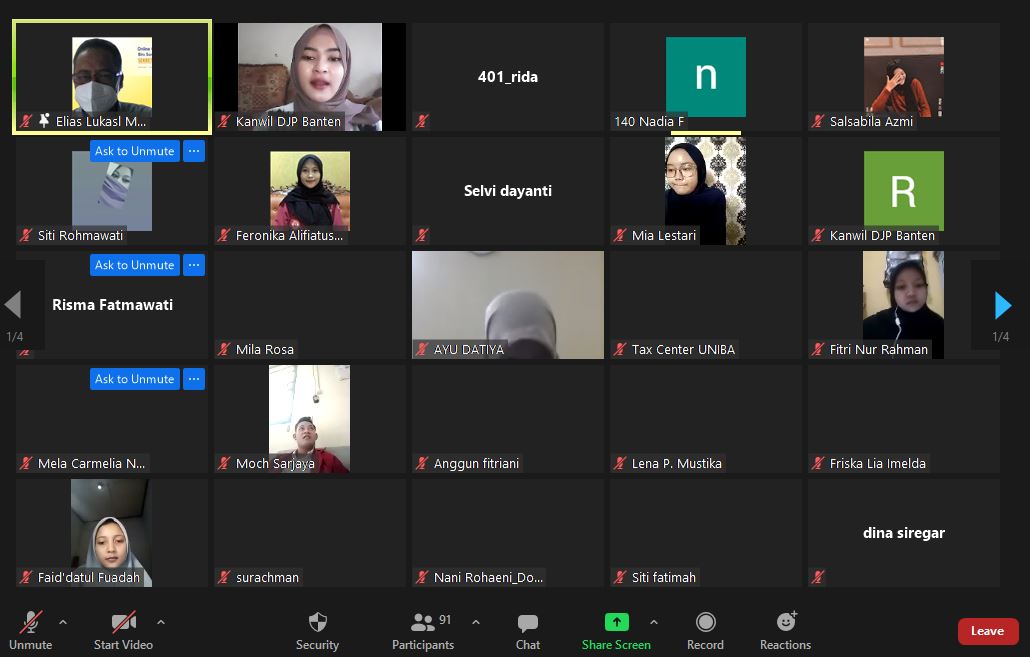 Kegiatan yang diikuti 90 peserta ini dilakukan dengan media Zoom Cloud Meeting dengan narasumber dari KPP Pratama Serang Barat yang diwakili oleh Kepala Seksi Ekstensifikasi dan Penyuluhan Elias Lukas Malona.