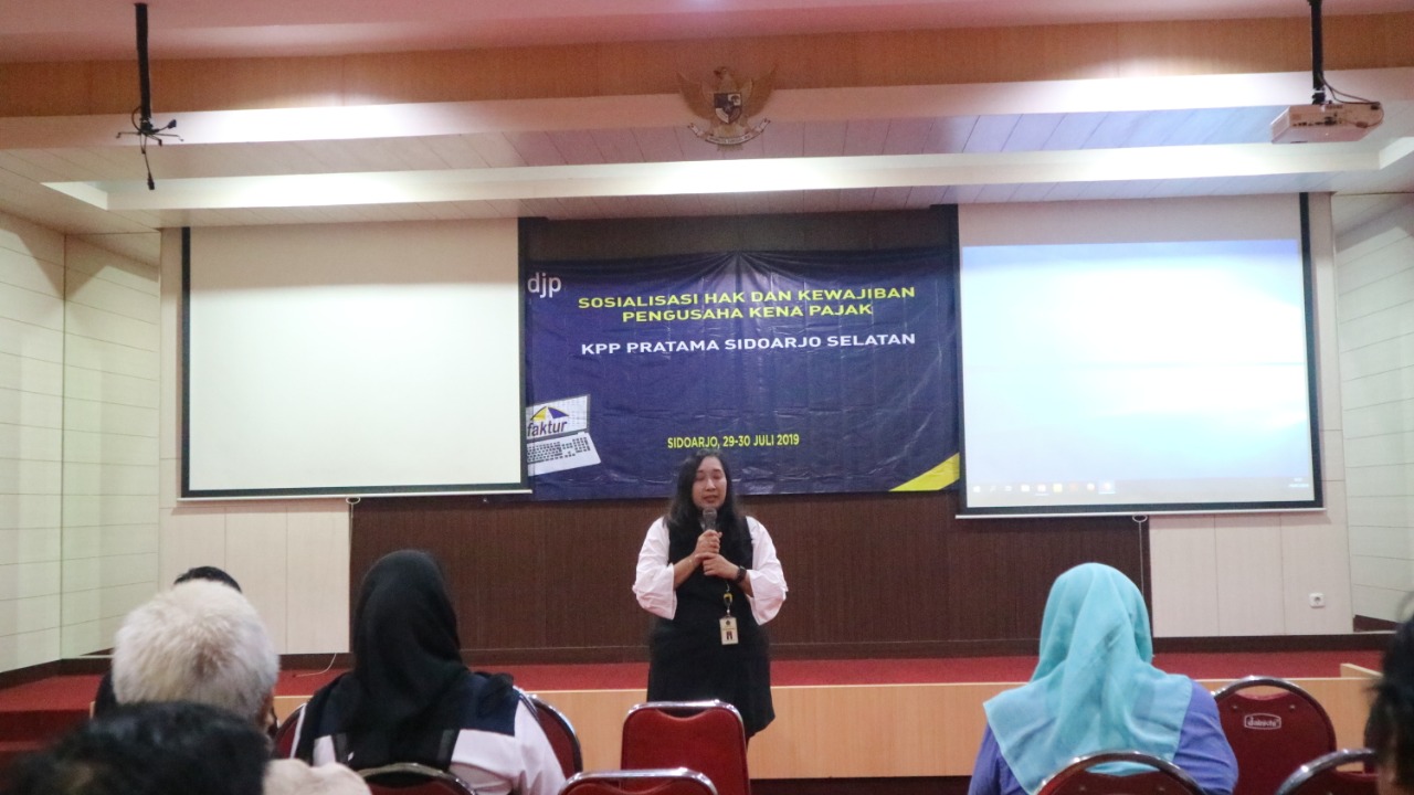 KPP Pratama Sidoarjo Selatan mengadakan penyuluhan kepada wajib pajak yang menjadi Pengusaha Kena Pajak (PKP) selama dua hari mulai Senin (29/7) sebagai sarana edukasi terkait kewajiban dan hak perpajakan PKP di Aula KPP Pratama Sidoarjo Selatan (Selasa, 30/7).