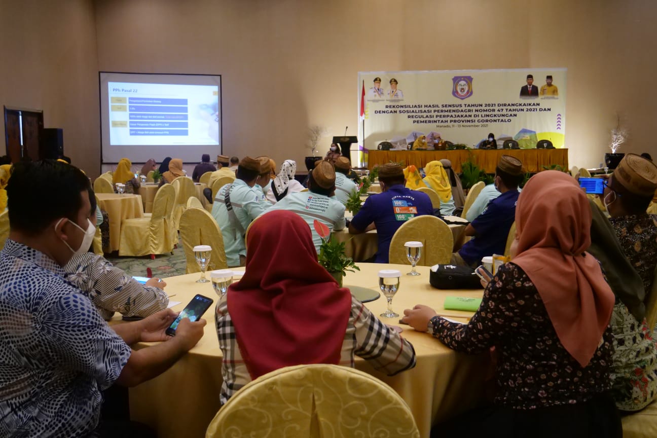 Kantor Pelayanan Pajak (KPP) Pratama Gorontalo bersama Kantor Wilayah Direktorat Jenderal Pajak Sulawesi Utara, Tengah, Gorontalo dan Maluku Utara (Kanwil DJP Suluttenggomalut) dan KPP Pratama Mando menghadiri undangan dari Pemerintah Provinsi Gorontalo untuk memberikan materi perpajakan dalam rangkaian acara Sosialisasi Regulasi Perpajakan di Lingkungan Pemerintah Provinsi Gorontalo yang diselenggarakan di Hotel Sintesa Peninsula, Kota Manado (Sabtu, 13/11). Kegiatan ini bertujuan untuk memberikan pemahaman kepada Bendahara Satuan Kerja Pemerintah Daerah (SKPD) Provinsi Gorontalo dalam melakukan penghitungan, penyetoran dan pelaporan pajak.