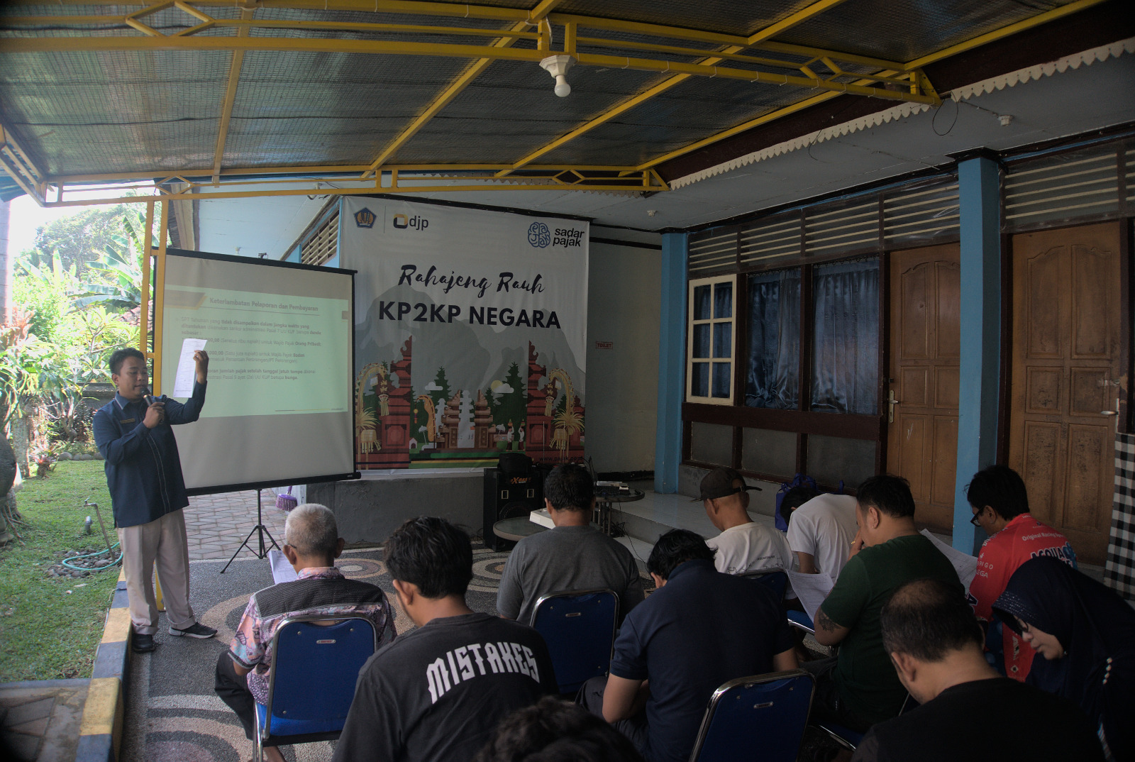 Sebanyak 17 Wajib Pajak Orang Pribadi Usaha Mikro Kecil dan Menengah (UMKM) menghadiri acara Pasraman Pajak Garden Tax Education yang diselenggarakan Kantor Pelayanan, Penyuluhan, dan Konsultasi Perpajakan (KP2KP) Negara (Rabu, 6/9). Pelaksana KP2KP Negara Muhammad Arif Luqman Syah selaku pemateri memaparkan proses penegakan hukum (law enforcement) di bidang perpajakan yang sesuai dengan peraturan berlaku.