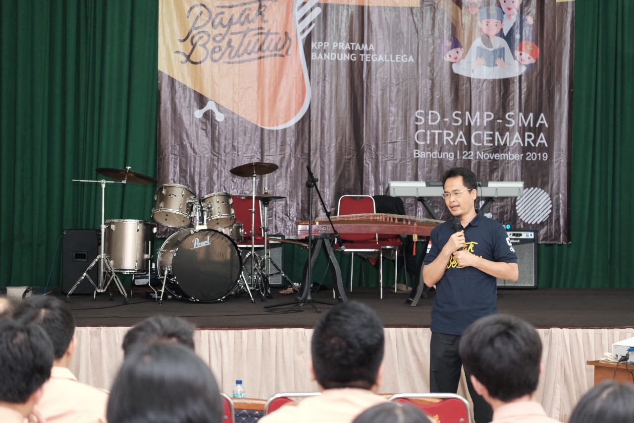 Inklusi kesadaran pajak melalui kegiatan Pajak Bertutur menjadi momentum bagi Direktorat Jenderal Pajak untuk mengedukasi para generasi muda Indonesia. KPP Pratama Bandung Tegallega memilih SD, SMP, dan SMA Citra Cemara yang berada di Kota Bandung sebagai tempat penyelenggaraan kegiatan Pajak Bertutur 2019 (Jumat, 22/11).