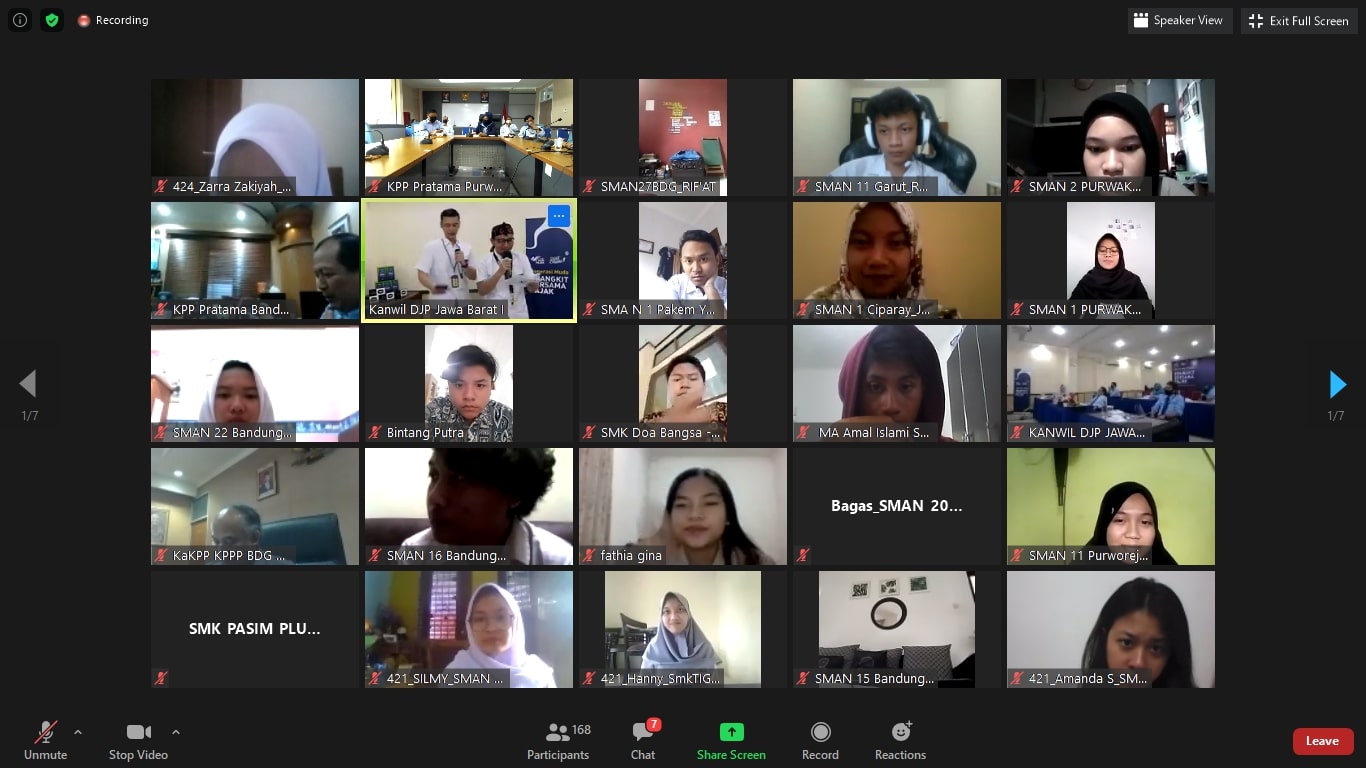 Sebanyak 10 orang siswa Sekolah Menengah Atas (SMA) yang merupakan putera-puteri dari pegawai KPP Pratama Purwakarta mengikuti kegiatan Pajak Bertutur yang diselenggarakan secara daring oleh Kanwil DJP Jawa Barat I di Bandung dan Purwarkarta (Rabu, 15/7).