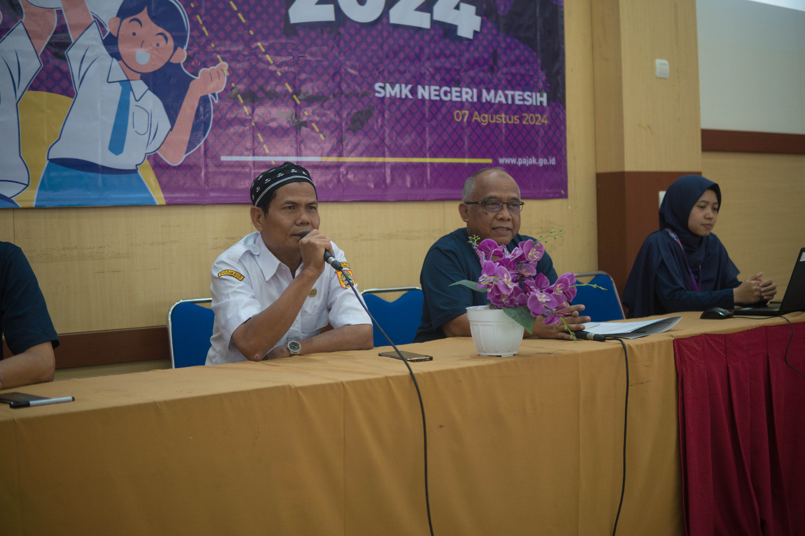 Kantor Pelayanan Pajak (KPP) Pratama Karanganyar melaksanakan kegiatan Pajak Bertutur (Patur) di SMK Negeri Matesih (Rabu, 7/8). Patur dilaksanakan pada pukul 09.00 WIB hingga pukul 12.00 WIB dengan melibatkan 72 siswa jurusan Desain Komunikasi Visual (DKV) jenjang kelas XI.