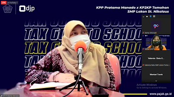 Kantor Pelayanan, Penyuluhan, dan Konsultasi Perpajakan (KP2KP) Tomohon dan Kantor Pelayanan Pajak (KPP) Pratama Manado bersama dengan Sekolah Menegah Pertama (SMP) Lokon St. Nikolaus Tomohon menyelenggarakan kegiatan Tax Goes To School (TGTS) secara daring di kota Tomohon (Jumat, 20/8). Kegiatan TGTS bertujuan untuk memberikan edukasi sejak dini kepada pelajar mengenai arti, manfaat dan peran pajak bagi bangsa dan negara.