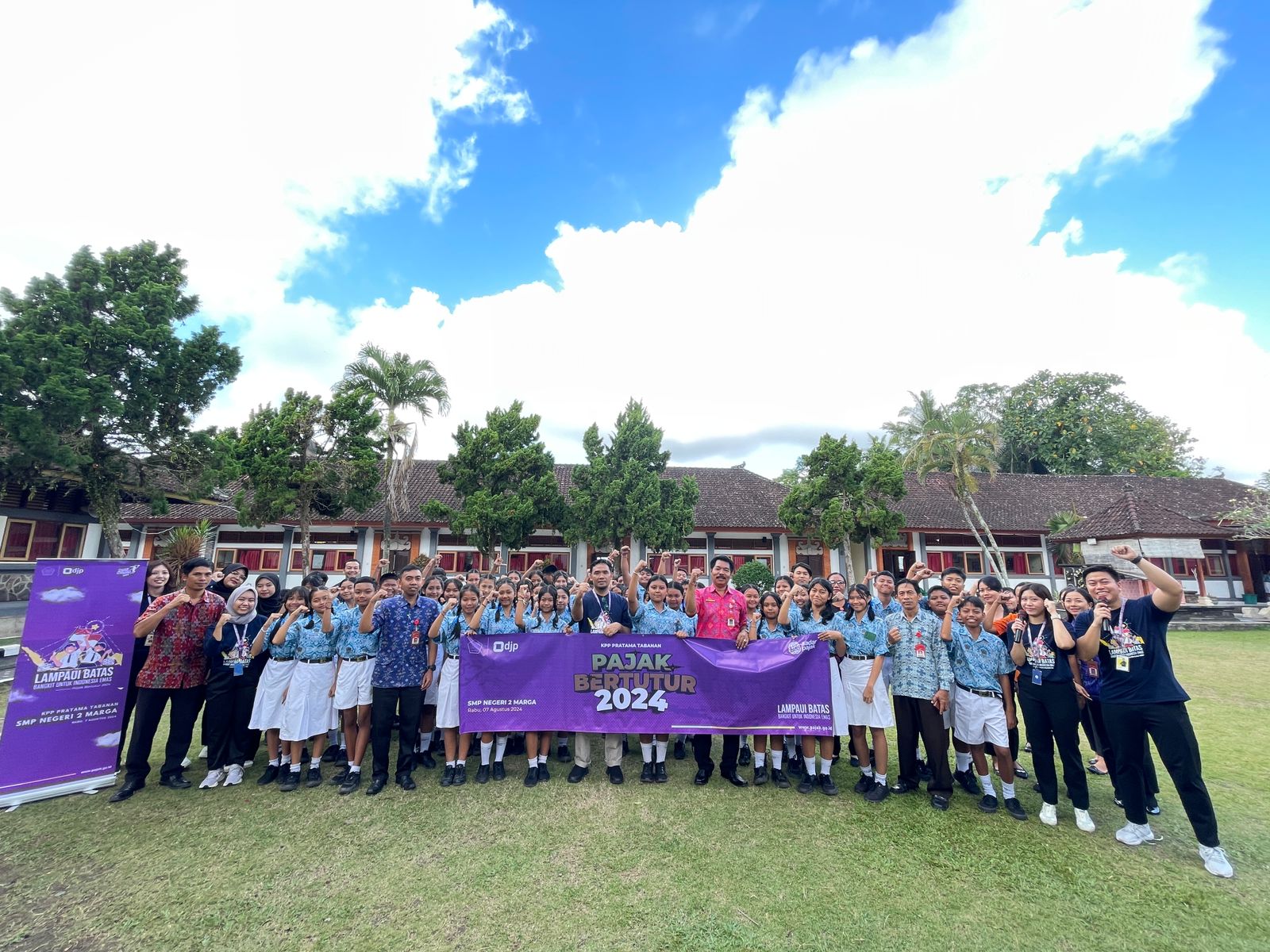Kantor Pelayanan Pajak Pratama Tabanan mengadakan Pajak Bertutur 2024 bersama enam puluh Siswa-Siswi SMP Negeri 2 Marga di Kabupaten Tabanan, Bali (Rabu, 7/8).