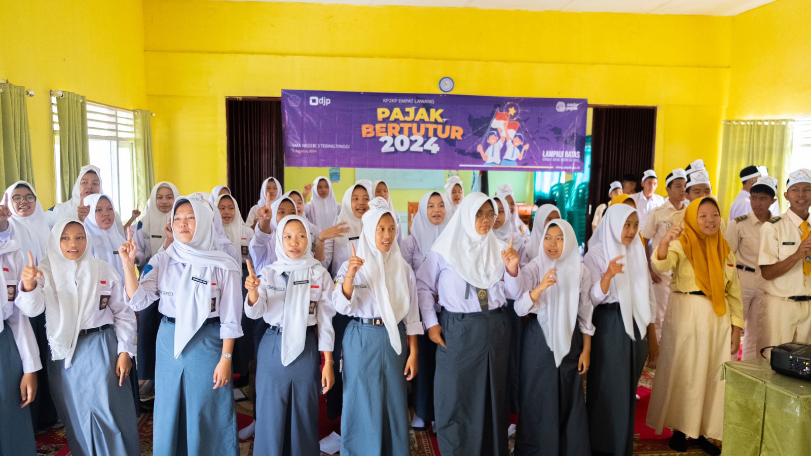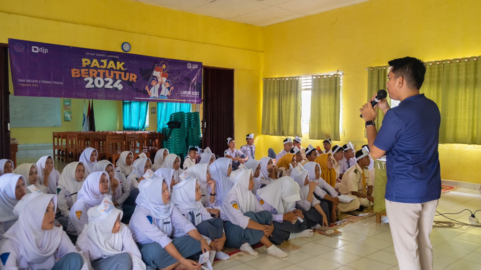Kantor Pelayanan, Penyuluhan, dan Konsultasi Perpajakan (KP2KP) Empat Lawang bersama Sekolah Menengah Atas Negeri (SMAN) 3 Tebing Tinggi menyelenggarakan kegiatan Pajak Bertutur 2024 dengan mengusung tema “Lampaui Batas, Bangkit untuk Indonesia Emas” di Aula SMAN 3 Tebing Tinggi, Empat Lawang, Sumatera Selatan (Rabu, 7/8). Kegiatan ini diikuti oleh 55 siswa-siwi SMAN 3 Tebing Tinggi.