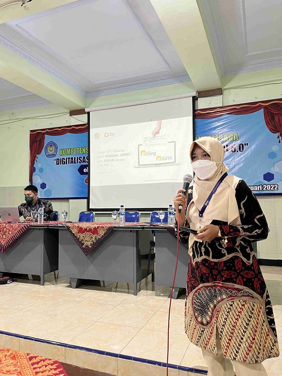 Hadir dalam acara tersebut, sekaligus bertindak sebagai Guru Tamu, Kepala Seksi Pelayanan Arief Mustofa bersama Partini dan Mohammad Aden, Tim Penyuluh Pajak KPP Pratama Jombang. Kepada para siswa, Mohammad Aden menjelaskan tentang Hak dan Kewajiban Perpajakan Wajib Pajak Orang Pribadi Karyawan dan Usahawan. Berikutnya, Partini memaparkan tentang Tata Cara Pengisian SPT Tahunan Orang Pribadi Karyawan melalui e-Filing.