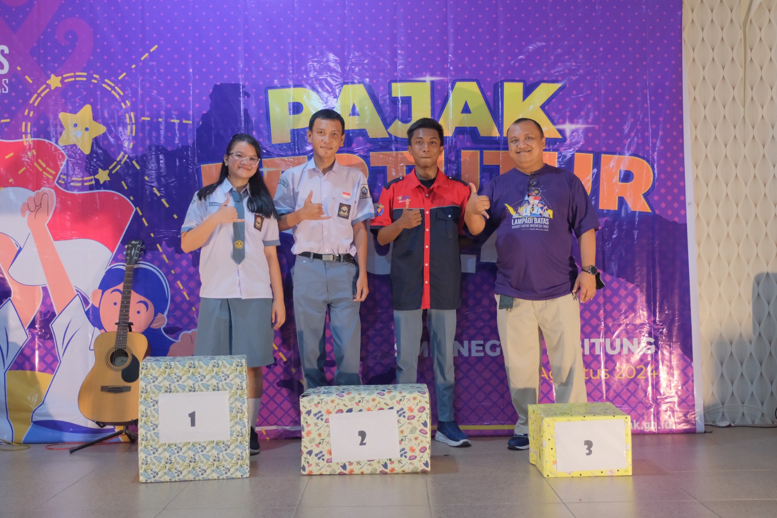Kantor Pelayanan Pajak (KPP) Pratama Bitung menyelenggarakan kegiatan Pajak Bertutur 2024 di Aula Sekolah Menengah Kejuruan (SMK) Negeri 1 Bitung, Kota Bitung, Sulawesi Utara (Rabu, 7/8).