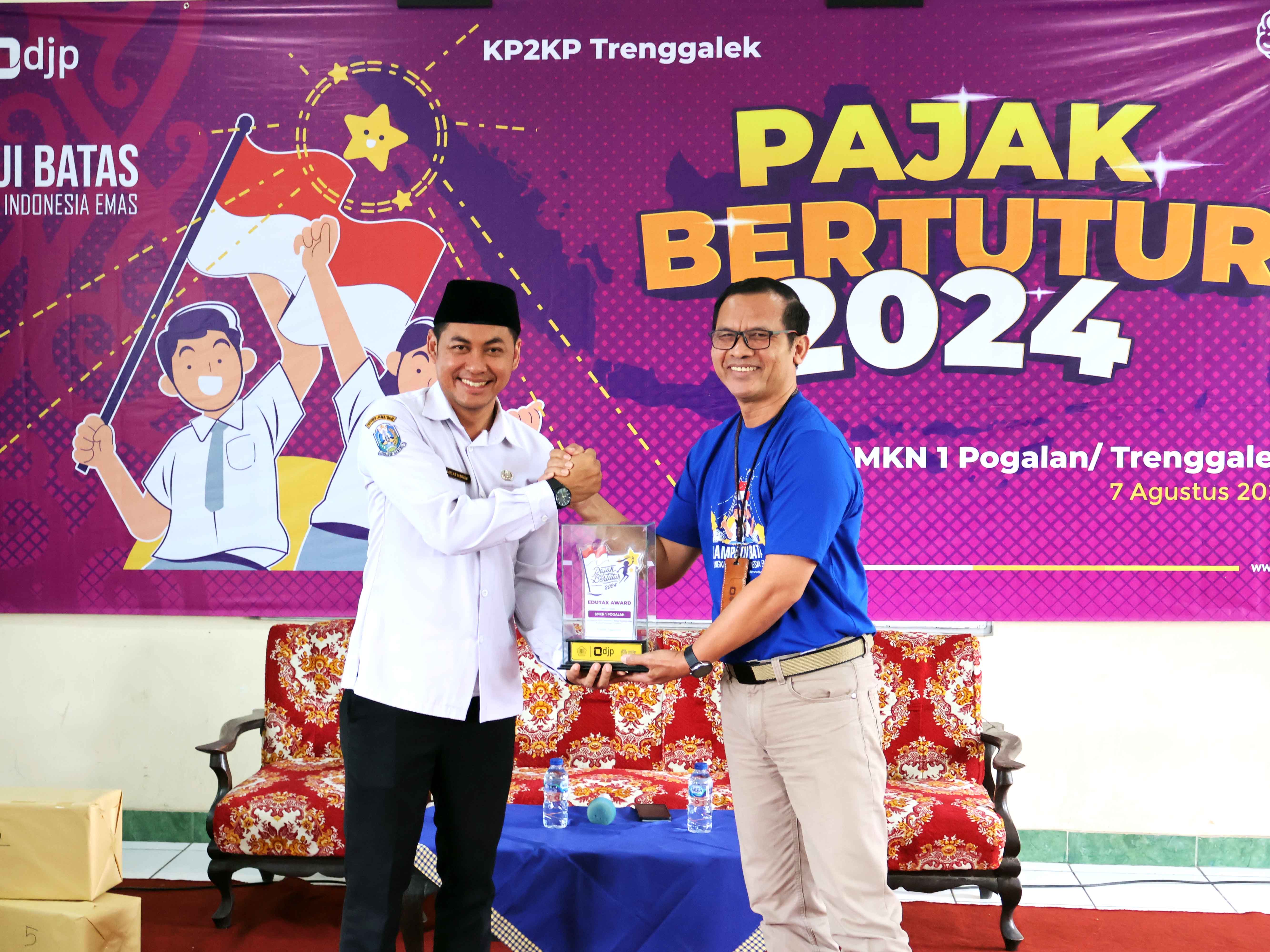 Kantor Pelayanan, Penyuluhan, dan Konsultasi Perpajakan (KP2KP) Trenggalek menyelenggarakan acara Pajak Bertutur bekerja sama dengan Sekolah Menengah Kejuruan Negeri (SMKN) 1 Pogalan (Rabu, 7/8). Acara ini diselenggarakan di Aula Kelas SMKN 1 Pogalan, Jalan Raya Tulungagung-Trenggalek Nomor 3, Duwet, Kecamatan Pogalan, Kabupaten Trenggalek, Jawa Timur. Pajak Bertutur 2024 merupakan sebuah inisiatif DJP untuk mengedukasi generasi muda sebagai future taxpayer. Tahun ini adalah kali ke-8 acara ini diselenggarakan sejak 2017.