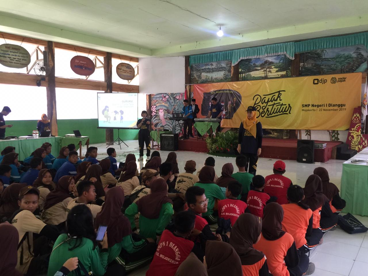 Dalam rangka menyambut hari guru yang jatuh pada tanggal 25 November, Pajak Bertutur tahun ini mengambil tema "Guru Baktimu Tiada Tara". KP2KP Mojosari melaksanakan Pajak Bertutur di SMPN I Dlanggu, Mojokerto (Jumat, 22/11). Acara diikuti oleh 175 peserta yang terdiri dari para siswa serta guru SMPN I Dlanggu. Acara berlangsung meriah dan seru, antusiasme peserta terlihat dengan banyaknya siswa yang aktif dalam setiap momen.