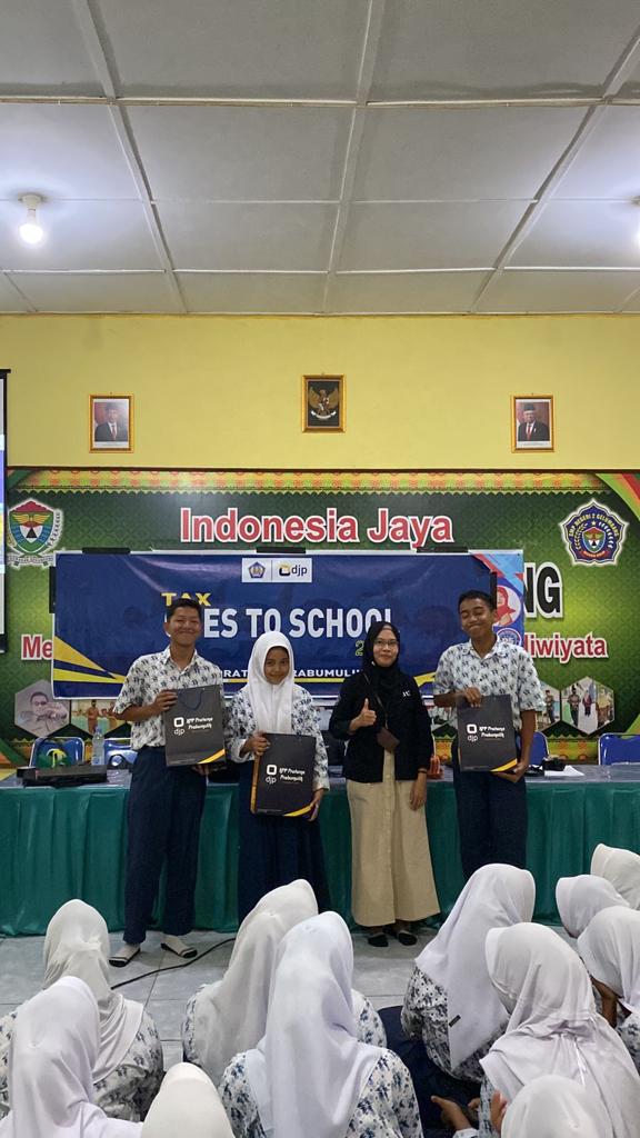 Kantor Pelayanan Pajak (KPP) Pratama Prabumulih mengadakan kegiatan Tax Goes to School (TGTS) 2023 yang dilaksanakan di Aula Sekolah Menengah Pertama (SMP) Negeri 2 Gelumbang, Muara Enim, Sumatera Selatan (Kamis, 20/07).