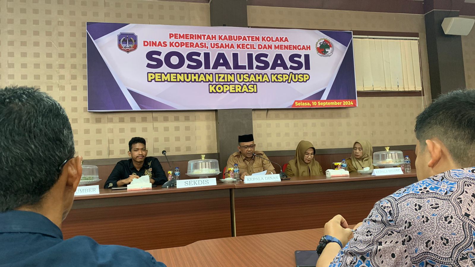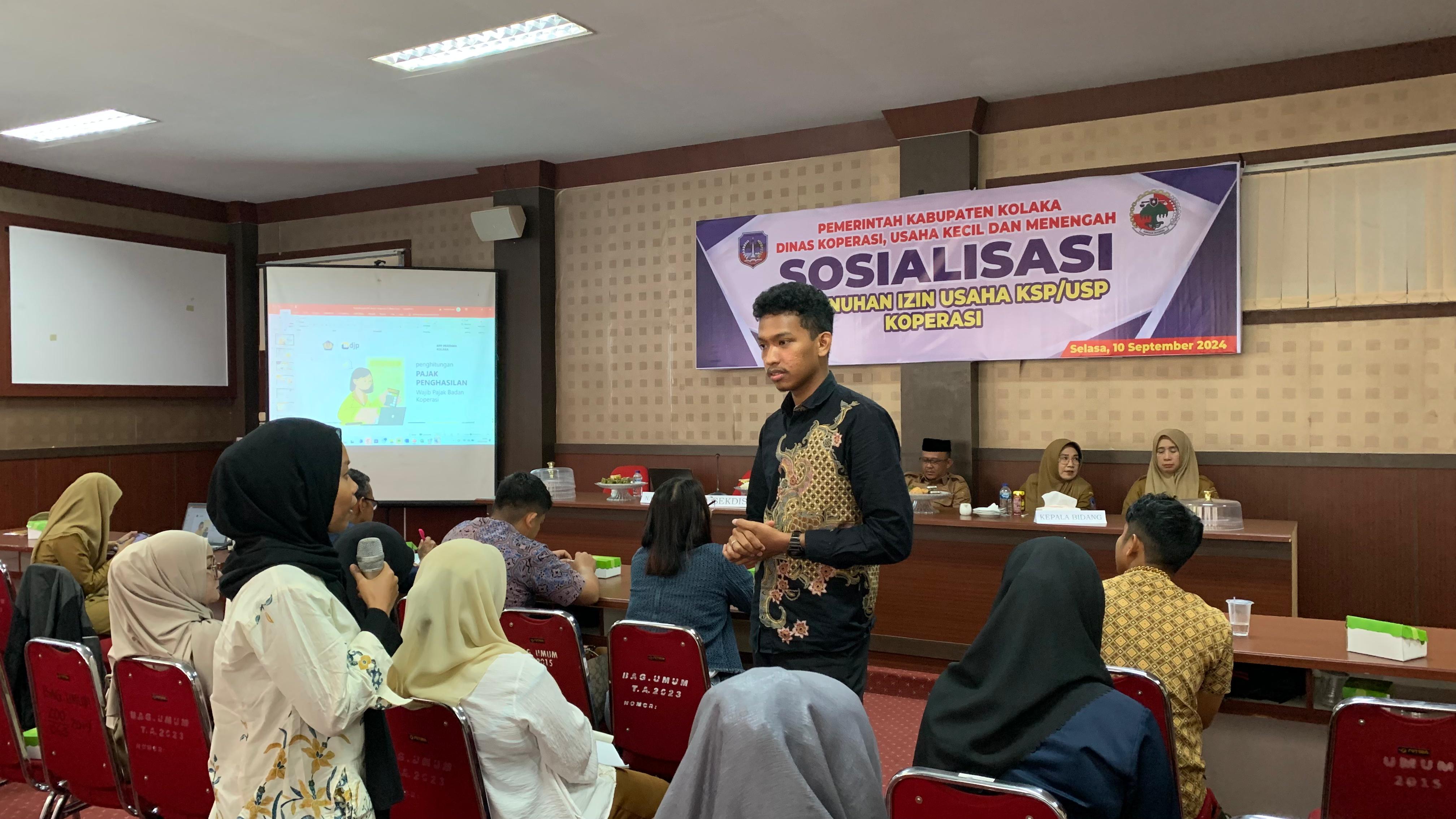 Kantor Pelayanan Pajak (KPP) Pratama Kolaka melakukan penyuluhan mengenai kewajiban perpajakan Koperasi Simpan Pinjam (KSP) dan Usaha Simpan Pinjam (USP) dalam sosialisasi Pemenuhan Izin Usaha KSP/USP Koperasi yang digelar Dinas Koperasi dan Usaha Mikro, Kecil dan Menengah (UMKM) (Selasa, 10/9). Acara yang diselenggarakan di aula kantor Dinas Koperasi dan UMKM ini dihadiri oleh 22 peserta yang terdiri dari pengurus koperasi dan pelaku usaha, serta dihadiri pula oleh Kepala Dinas Koperasi dan UMKM, Sekretaris Dinas, dan Kepala Bidang Kelembagaan dan Pengawasan.