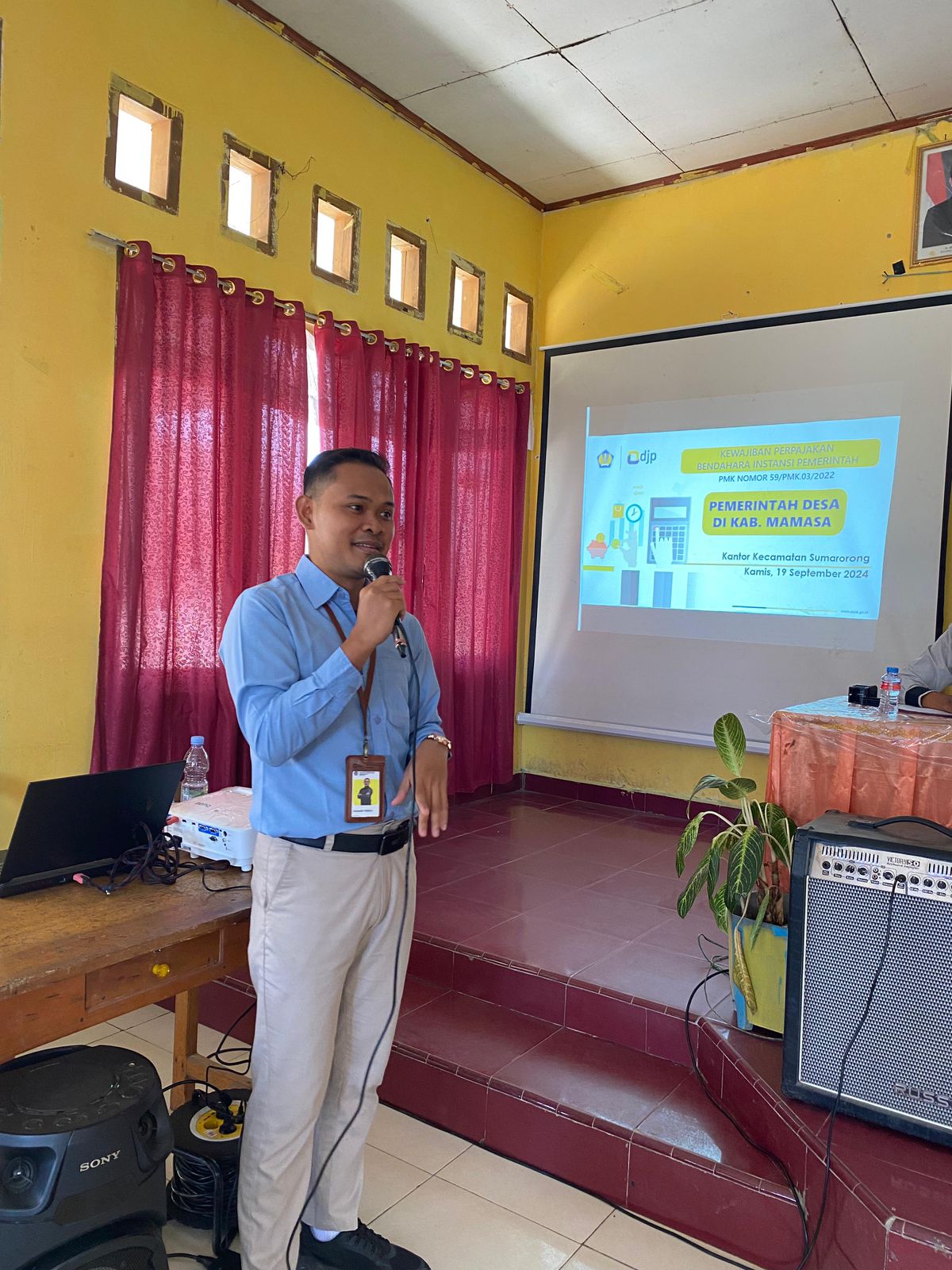 Kantor Pelayanan Pajak (KPP) Pratama Majene menyelenggarakan sosialisasi kewajiban bendahara desa Kabupaten Mamasa di Ruang Aula Kantor Kecamatan Sumarorong, Jalan Poros Mamasa-Sumarorong (Kamis, 19/9). Pelaksanaan sosialisasi ini turut mengundang Dinas Pemberdayaan Masyarakat dan Desa Kabupaten Mamasa serta Inspektorat Daerah Kabupaten Mamasa. Kegiatan ini merupakan pertama kali dilaksanakan di Kabupaten Mamasa yang diikuti oleh peserta dari berbagai desa.