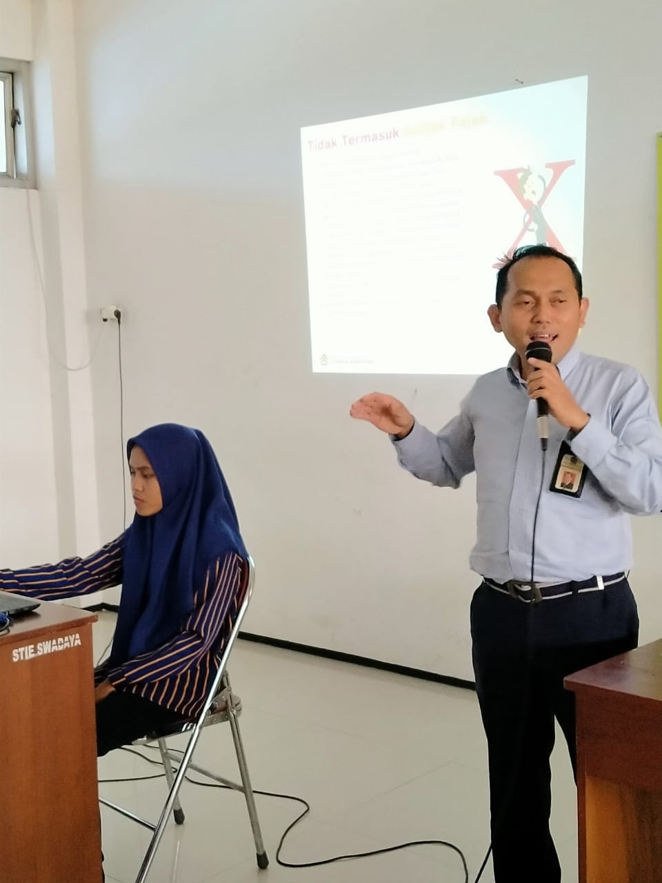 Dalam rangka membangun kesadaran pajak terutama bagi generasi muda sebagai generasi calon-calon pelaku ekonomi masa depan, STIE Swadaya bekerja sama dengan Kantor Wilayah DJP Jakarta Timur menyelenggarakan seminar perpajakan di Aula STIE Swadaya, Jakarta (Rabu, 13/11). Para dosen, mahasiswa, dan karyawan menghadiri seminar ini dengan penuh antusias.
