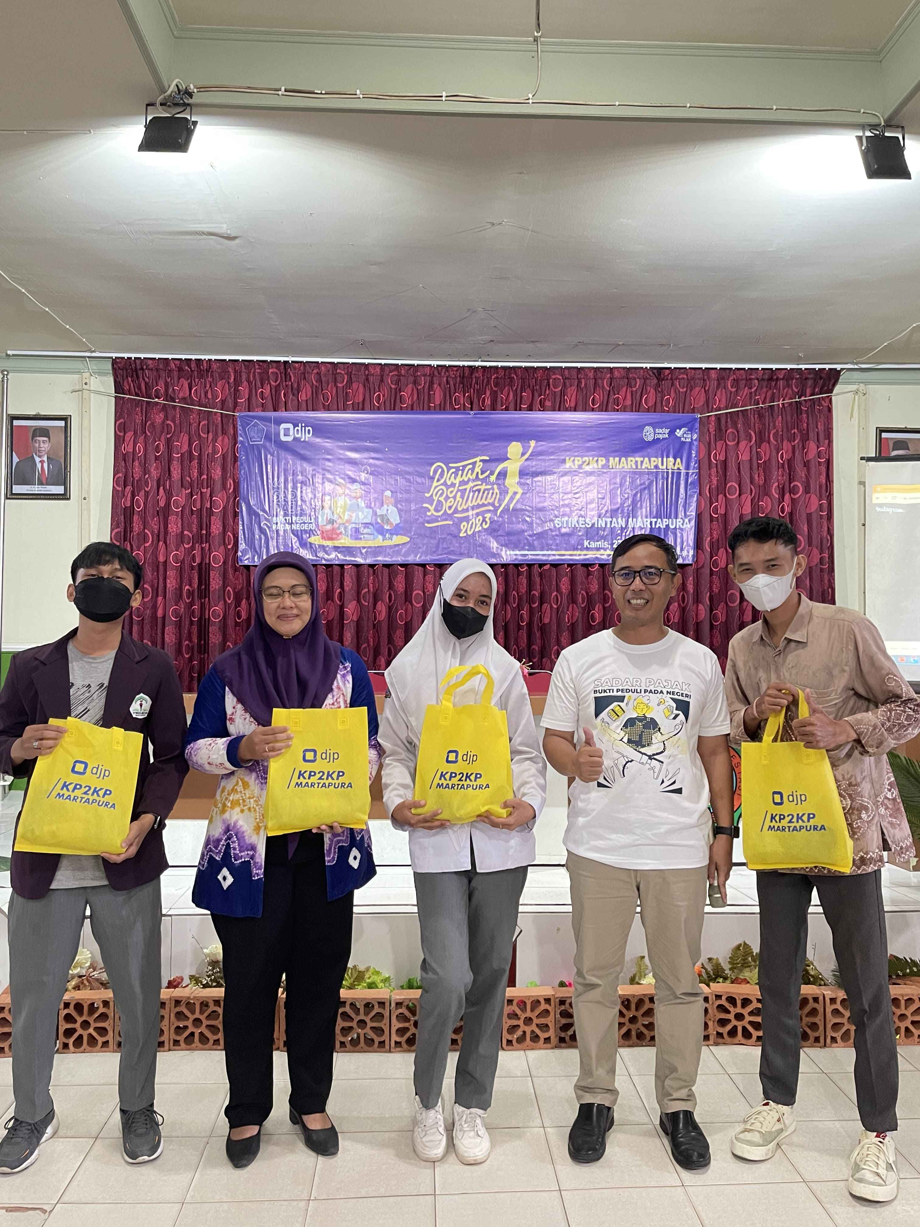 Kantor Pelayanan, Penyuluhan, dan Konsultasi Perpajakan (KP2KP) Martapura menggelar kegiatan Pajak Bertutur bersama dengan Sekolah Tinggi Ilmu Kesehatan (STIKES) Intan Martapura. Kegiatan ini diikuti oleh perwakilan mahasiswa, mahasiswi, dan dosen di Aula STIKES Intan Martapura, Kabupaten Banjar (Kamis, 27/7).