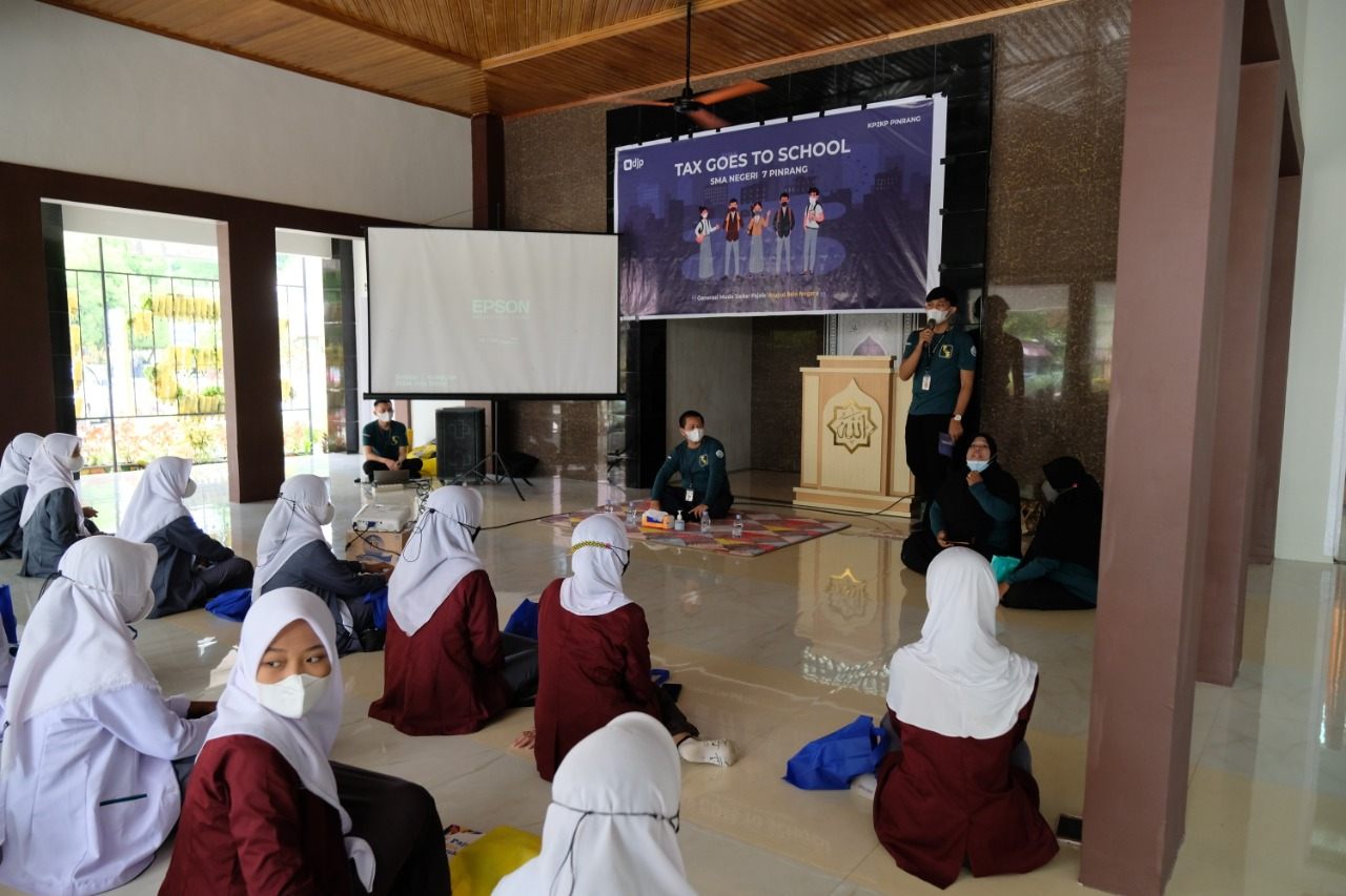 Kantor Pelayanan, Penyuluhan, dan Konsultasi Perpajakan (KP2KP) Pinrang melaksanakan kegiatan Tax Goes To School (TGTS) secara luring di ruang musala SMA Negeri 7 Pinrang, Kabupaten Pinrang (Rabu, 13/10). TGTS kali dilaksanakan setelah sebelumnya KP2KP Pinrang melaksanakan kegiatan Pajak Bertutur di SMA Negeri 1 Pinrang secara daring via zoom.