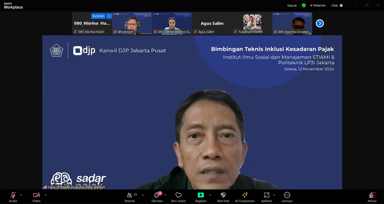 Kantor Wilayah Direktorat Jenderal Pajak (Kanwil DJP) Jakarta Pusat melaksanakan kegiatan Bimbingan Teknis Inklusi Kesadaran Pajak di lingkungan Institut Ilmu Sosial dan Manajemen STIAMI dan Politeknik LP3I Jakarta, Jakarta (Selasa, 12/11).
