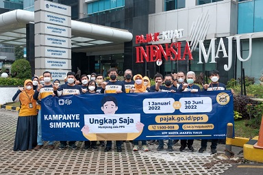Kantor Pelayanan Pajak (KPP) Madya Jakarta Timur mengadakan Kampanye Simpatik yang diadakan di Perempatan Tugu Tani Jakarta dan sekitarnya di Jakarta Pusat (Jumat, 17/6). Kegiatan bertujuan untuk menyukseskan Program Pengungkapan Sukarela (PPS).