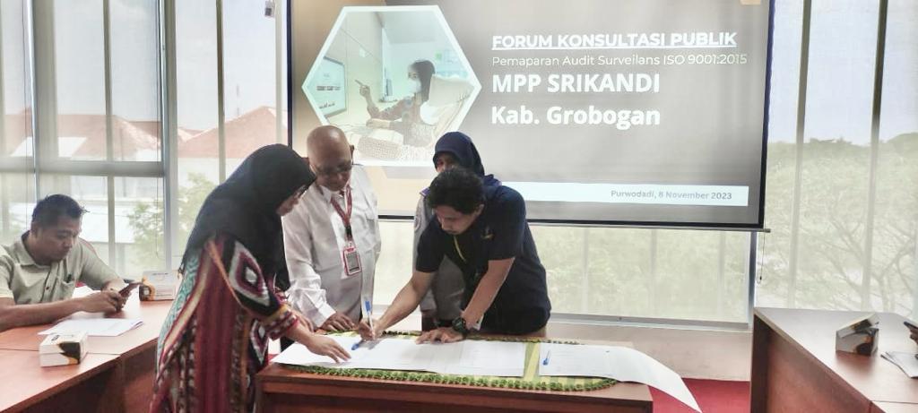 Kepala Kantor Pelayanan, Penyuluhan, dan Konsultasi Perpajakan (KP2KP) Purwodadi menghadiri Forum Konsultasi Publik dalam rangka Surveilans ISO 9001:2015 Mall Pelayanan Publik (MPP) Srikandi Kabupaten Grobogan di Ruang Rapat Lantai 3 MPP Grobogan, Jln. Paramedis Komplek Simpang Lima Purwodadi (Rabu, 8/11).