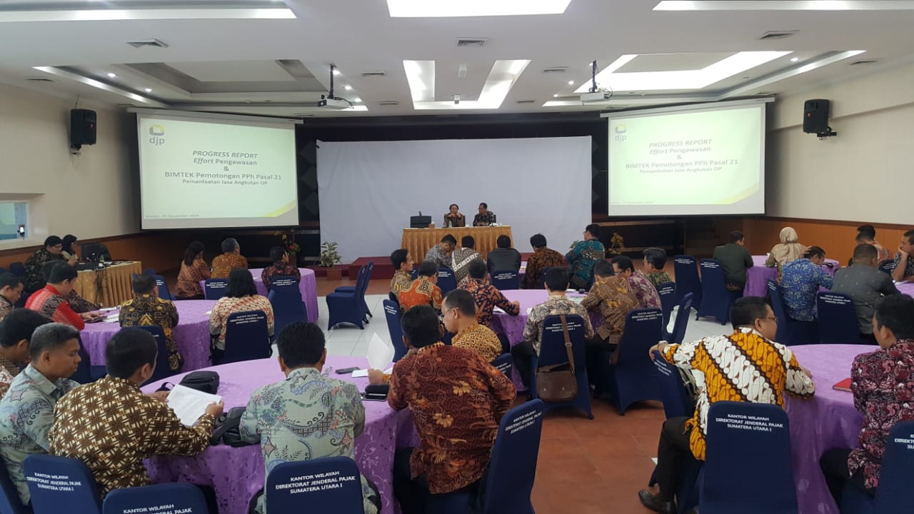 Kantor Wilayah (Kanwil) Direktorat Jenderal Pajak (DJP) Sumatera Utara I mengadakan Rapat Progress Report Effort Pengawasan dan Bimbingan Teknis Pemotongan PPh Pasal 21 atas Pemanfaatan Jasa Angkutan yang Dimiliki Orang Pribadi bertempat di Aula Kantor Lantai 8, Pematang Siantar (Selasa, 5/11).