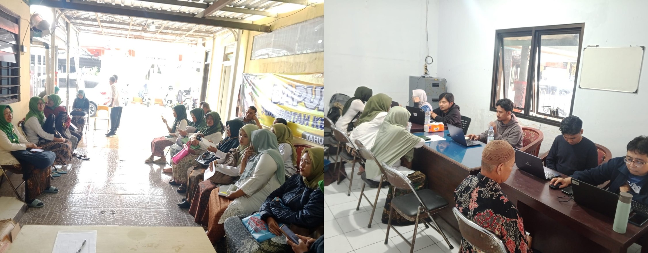 Sejak pukul 09.00 WIB, teras kantor kecamatan sudah mulai dipadati warga yang mengenakan jas hujan dan membawa payung.
