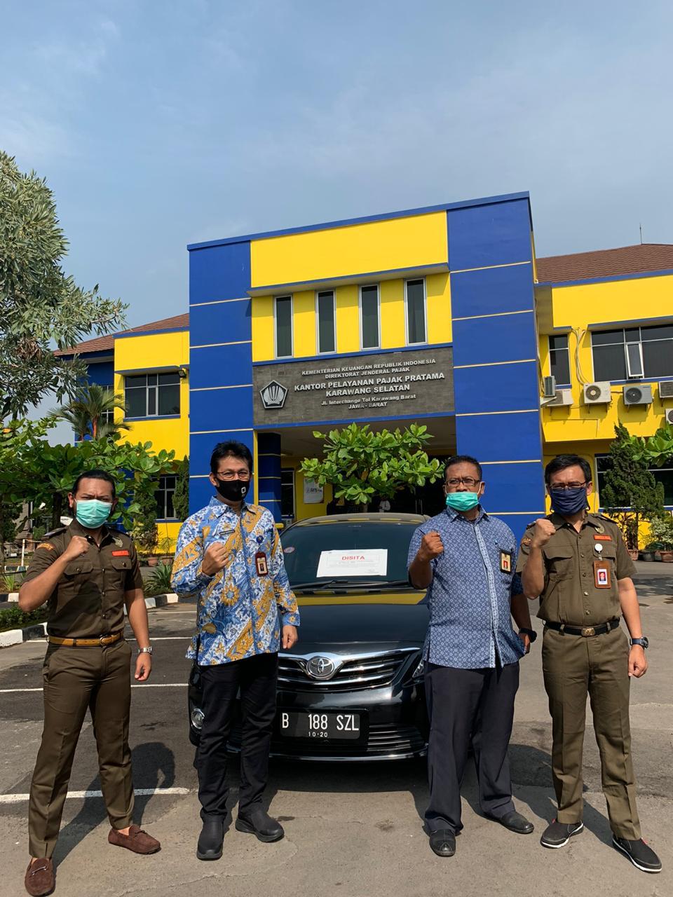 Di tengah pandemi Covid-19, KPP Pratama Karawang Selatan menyita aset wajib pajak (WP) berupa satu unit Toyota Corolla Altis di Kecamatan Klari, Kabupaten Karawang (Rabu, 26/8). WP yang bergerak di bidang jasa penyeleksian dan penempatan tenaga kerja dalam negeri ini telah memiliki tunggakan pajak sejak tahun 2016 atas pungutan PPN yang tidak disetorkan ke kas negara. Total tunggakan pajak WP sampai saat ini telah mencapai 2,2 miliar rupiah.