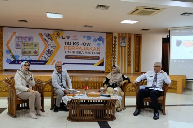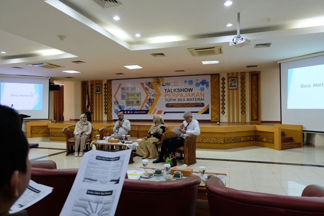 Dalam rangka sosialisasi penggunaan Bea Meterai, Kanwil Ditjen Pajak Sumsel dan Kep. Babel bekerja sama dengan Kantor Regional III PT Pos Indonesia menggelar acara talkshow (Kamis, 12/9). Talkshow yang dibuka oleh Kepala Kantor Regional III Rahmat Siddik ini menghadirkan dua narasumber, yaitu Kepala KPP Pratama Palembang Ilir Barat Risquna Rasyid dan Kepala Kantor Pos Palembang Risdayati. Sekitar 175 peserta, anggota PHRI Palembang, hadir memenuhi undangan di aula Kanwil DJP Sumsel dan Kep. Babel, Jl. Tasik, Kambang Iwak, Palembang.
