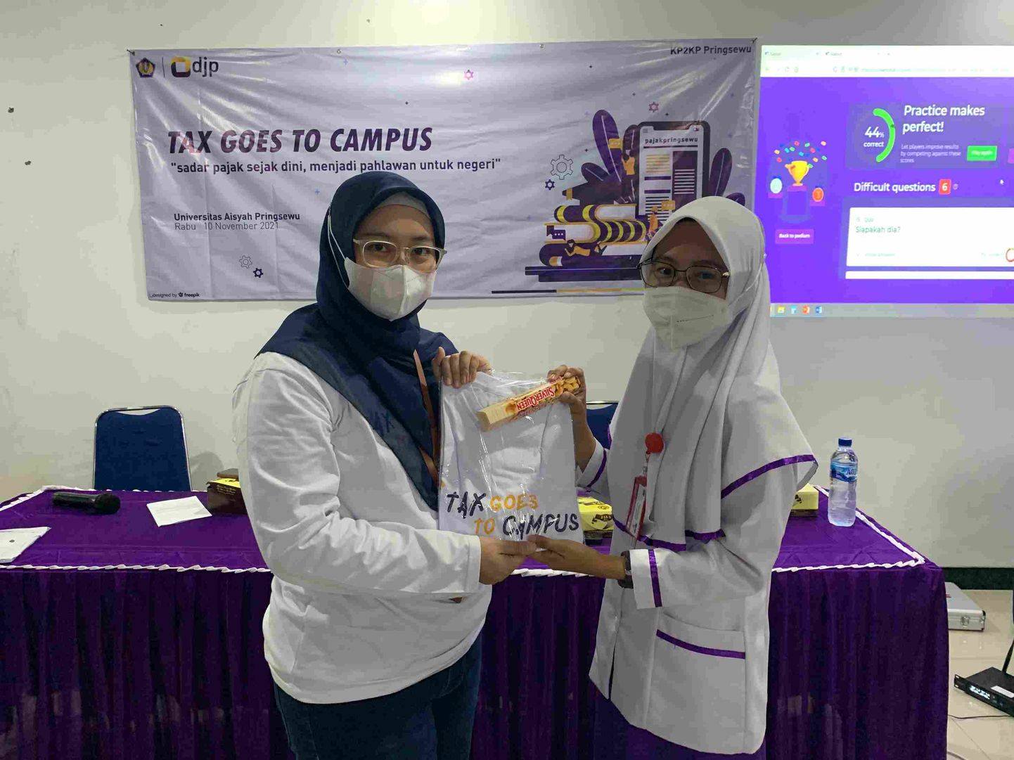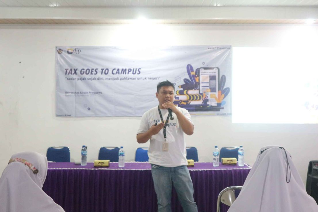 Kantor Pelayanan Penyuluhan dan Konsultasi (KP2KP) Pringsewu menyelenggarakan Tax Goes to Campus (TGTC) secara luring di Universitas Aisyah Pringsewu (UAP), Kabupaten Pringsewu (Kamis,11/11). Acara dimulai pada pukul 09.00 WIB. Acara dibuka dengan sambutan oleh Kepala KP2KP Pringsewu Mohammad Bardian Novara. Dalam sambutannya, Bardian mengatakan bahwa tujuan diadakannya kegiatan TGTC adalah sebagai pengenalan dan penanaman kesadaran pajak sejak dini kepada mahasiswa.
