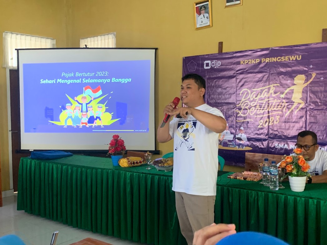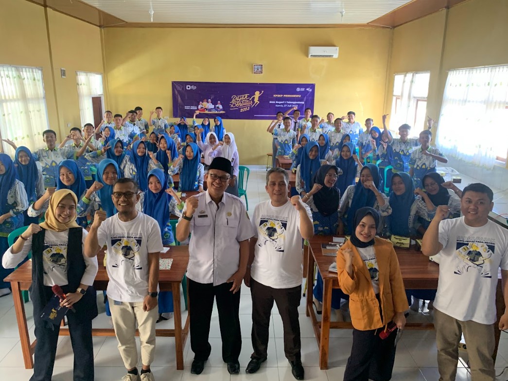 Sebanyak 50 siswa dan siswi SMA Negeri 1 Talangpadang mengikuti acara Pajak Bertutur 2023 yang diselenggarakan oleh Kantor Pelayanan, Penyuluhan, dan Konsultasi Perpajakan (KP2KP) Pringsewu secara luring di SMA Negeri 1 Talangpadang, Kecamatan Talangpadang, Kabupaten Tanggamus, Provinsi Lampung (Kamis, 27/7).