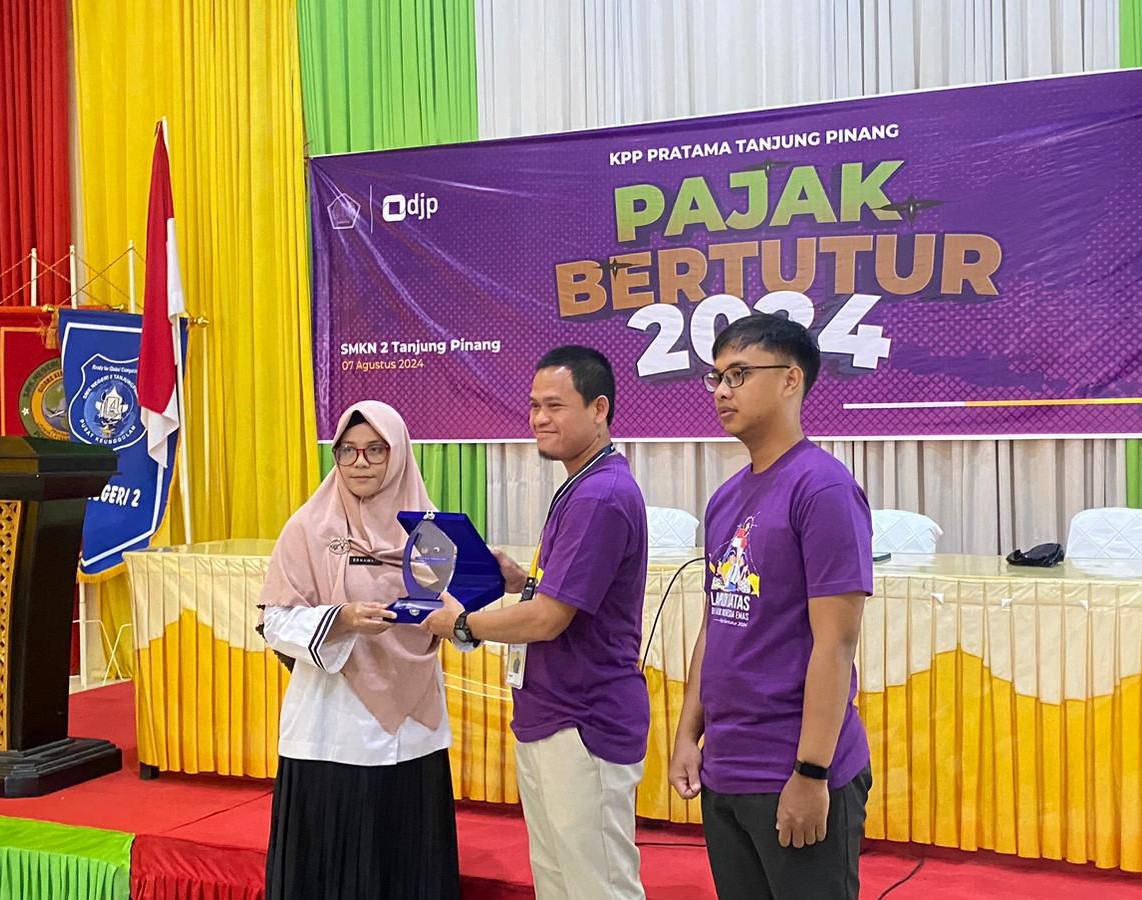 Kantor Pelayanan Pajak (KPP) Pratama Tanjung Pinang menyelenggarakan kegiatan Pajak Bertutur 2024 di SMKN 2 Tanjungpinang, Kepulauan Riau (Rabu, 7/8). Pajak Bertutur yang diikuti oleh 40 siswa dan 3 perwakilan guru ini berlangsung selama 2 jam, dimulai pukul 08.00 WIB.