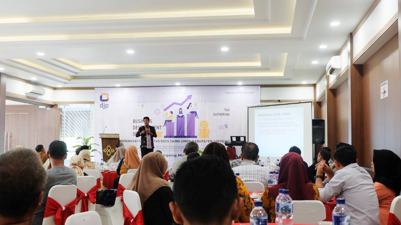 Tax Gathering dan BDS kali ini mulai dilaksanakan pukul 08.30 WITA dan berakhir pukul 12.00 WITA ditutup dengan kegiatan makan siang bersama. Adapun tema yang diusung pada acara kali ini yaitu "Meningkatkan Daya Saing UMKM Kabupaten Soppeng". Pada kesempatan ini diundang narasumber yaitu Drs. Andi Arif Simping, MM selaku Kepala Seksi Promosi Perdagangan Luar Negeri, Dinas Perdagangan Provinsi Sulawesi Selatan. Acara ini sendiri diadakan dengan tujuan untuk dapat memberikan banyak manfaat kepada para wajib pajak, khususnya di wilayah Kabupaten Soppeng.