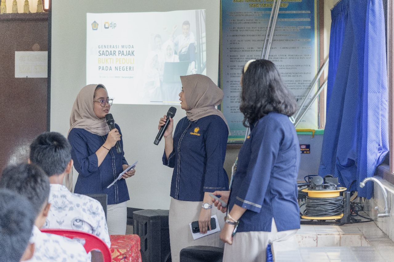 Tim Kantor Penyuluhan, Pelayanan dan Konsultasi Perpajakan (KP2KP) Ubud bersama Tim Kantor Pelayanan Pajak (KPP) Pratama Gianyar melaksanakan sosialisasi kepada siswa-siswi SMA Negeri 1 Banjarangkan Kabupaten Klungkung. Acara dibagi menjadi dua sesi, yaitu saat di Lapangan dan Ruang Laboratorium SMA Negeri 1 Banjarangkan, Bali (Senin, 29/5).