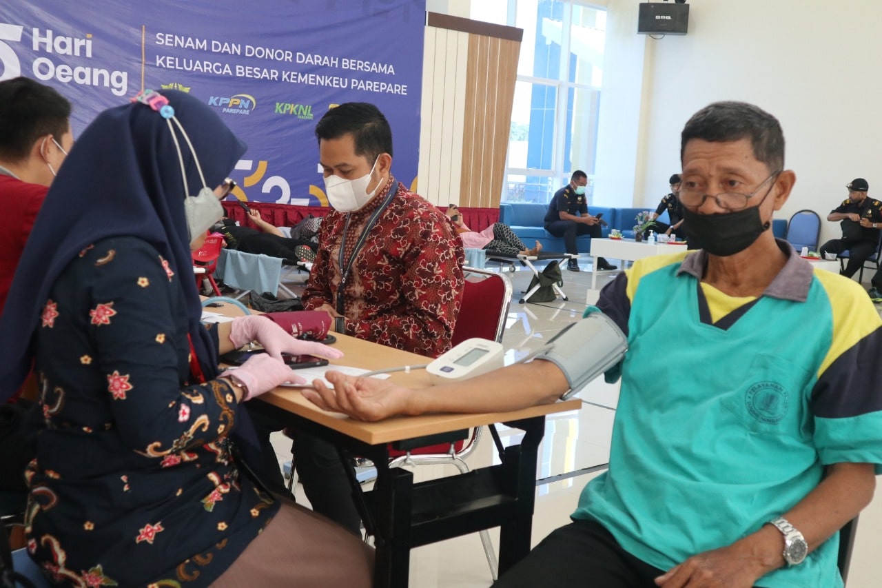 Kantor Pelayanan Pajak (KPP) Pratama Parepare bersama mitra kerja instansi vertikal Kementerian Keuangan di wilayah Kota Parepare menyelenggarakan kegiatan donor darah dalam rangka memperingati Hari Oeang (Jumat, 29/10). Kegiatan donor darah ini dilaksanakan dengan penerapan protokol kesehatan di ruang aula KPP Pratama Parepare, Kota Parepare.