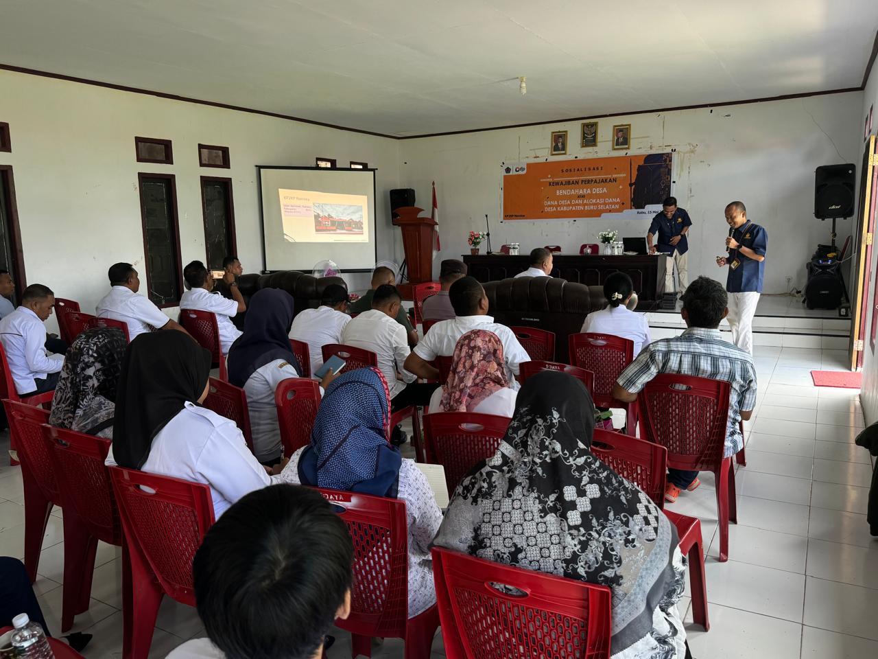 Sosialisasi disampaikan oleh Kepala KP2KP Namlea, Saino. Beliau menjelaskan apa saja pajak yang wajib dipotong/dipungut dalam transaksi belanja baik barang maupun jasa menggunakan DD dan ADD. Selain materi yang disampaikan, KP2KP Namlea juga telah menyiapkan bahan evaluasi terkait pembayaran pajak yang telah dilakukan oleh desa untuk tahun pajak 2021 sampai dengan 2024. Dari paparan yang disampaikan, masih banyak desa yang belum sepenuhnya melaksanakan kewajiban perpajakannya. Hal ini menjadi perhatian bersama dan menjadi topik diskusi dalam kegiatan kali ini.