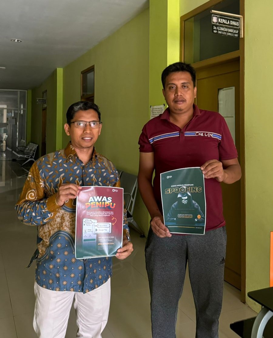 Kantor Pelayanan, Penyuluhan, dan Konsultasi Perpajakan (KP2KP) Enrekang melakukan kunjungan ke Dinas Pemberdayaan Masyarakat dan Desa (DPMD) Kabupaten Enrekang yang bertempat di Kantor Gabungan Dinas, Jalan Jenderal Sudirman, Kelurahan Leoran, Kecamatan Enrekang, Kabupaten Enrekang, Provinsi Sulawesi Selatan (Jumat, 6/9). Kunjungan ini dilakukan sebagai respons terhadap aduan wajib pajak yang menerima pesan penipuan dengan mengatasnamakan Direktorat Jenderal Pajak (DJP).
