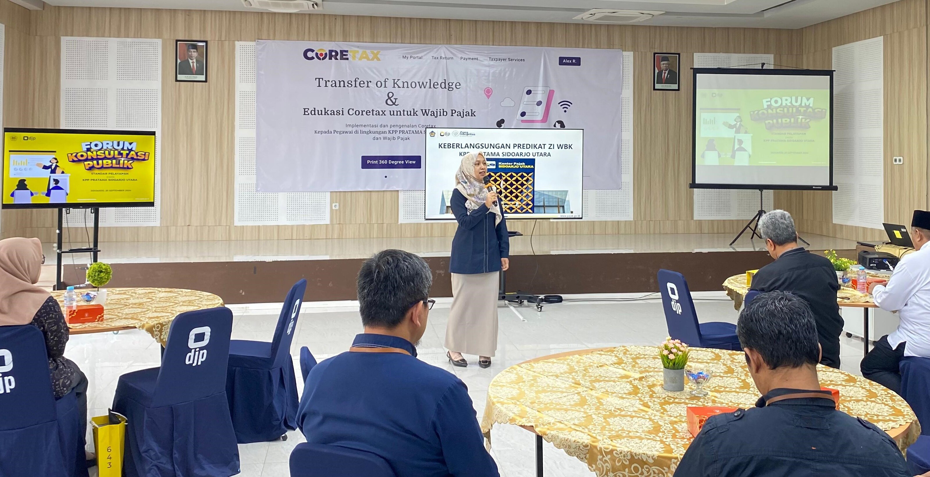 Kantor Pelayanan Pajak (KPP) Pratama Sidoarjo Utara mengadakan Forum Konsultasi Publik di Aula Buduran, Kantor Pelayanan Pajak (KPP) Pratama Sidoarjo Utara (Rabu, 25/9). Acara ini bertujuan untuk mendapatkan umpan balik atas pelayanan yang telah diberikan Direktorat Jenderal Pajak (DJP) dalam penyempurnaan Standar Pelayanan Perpajakan. Dengan kegiatan ini, diharapkan adanya peningkatan kualitas layanan melalui keterlibatan aktif publik, sesuai dengan amanat Undang-Undang Nomor 25 Tahun 2009 tentang Pelayanan Publik.