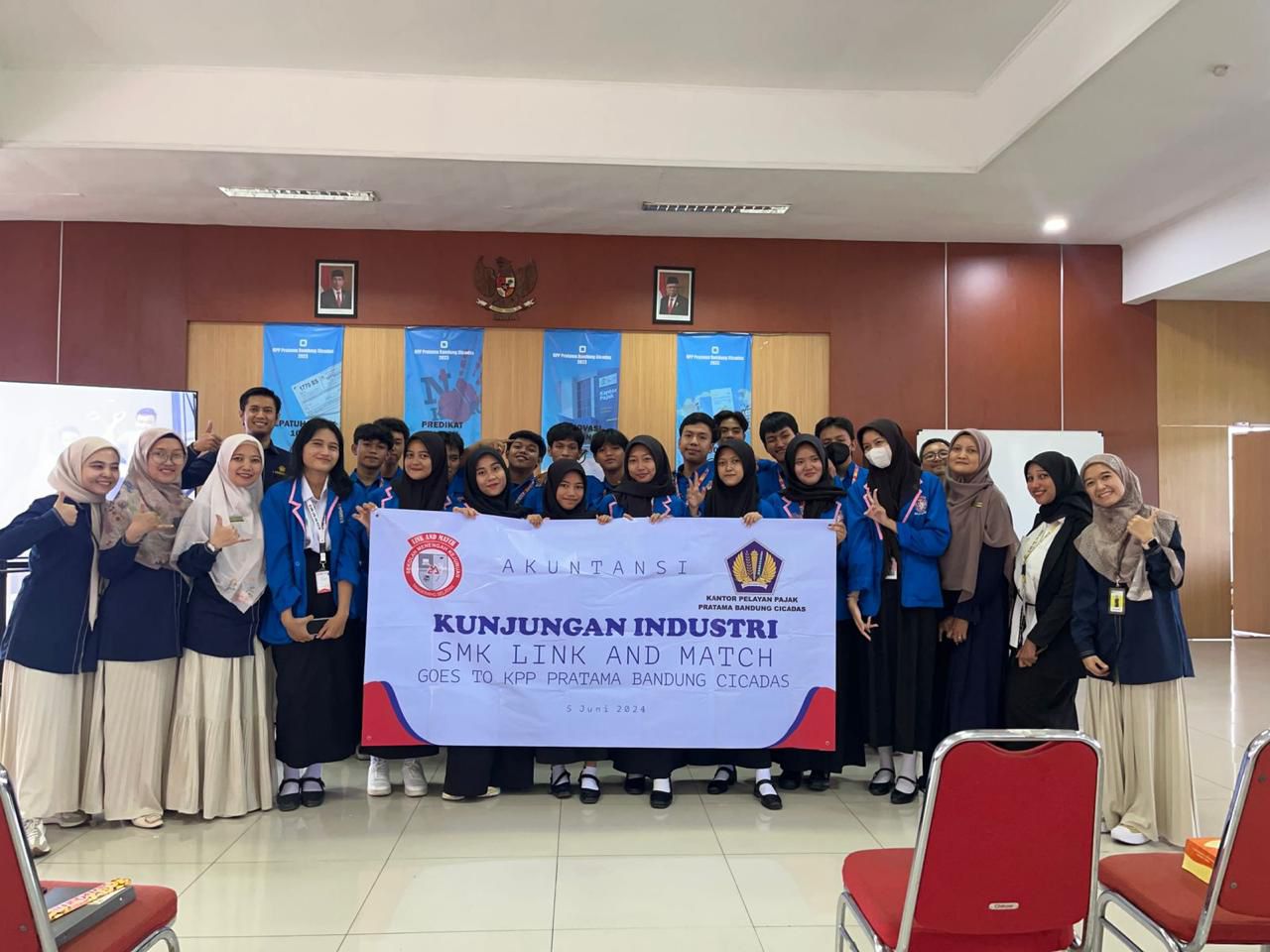 Kantor Pelayanan Pajak (KPP) Pratama Bandung Cicadas menerima kunjungan industri dari Sekolah Menengah Kejuruan (SMK) Link and Match Tangerang Selatan dengan diikuti siswa yang mengambil jurusan atau kejuruan akuntansi di aula KPP Pratama Bandung Cicadas. Jalan Soekarno Hatta Nomor 781, Kota Bandung (Rabu, 19/6).