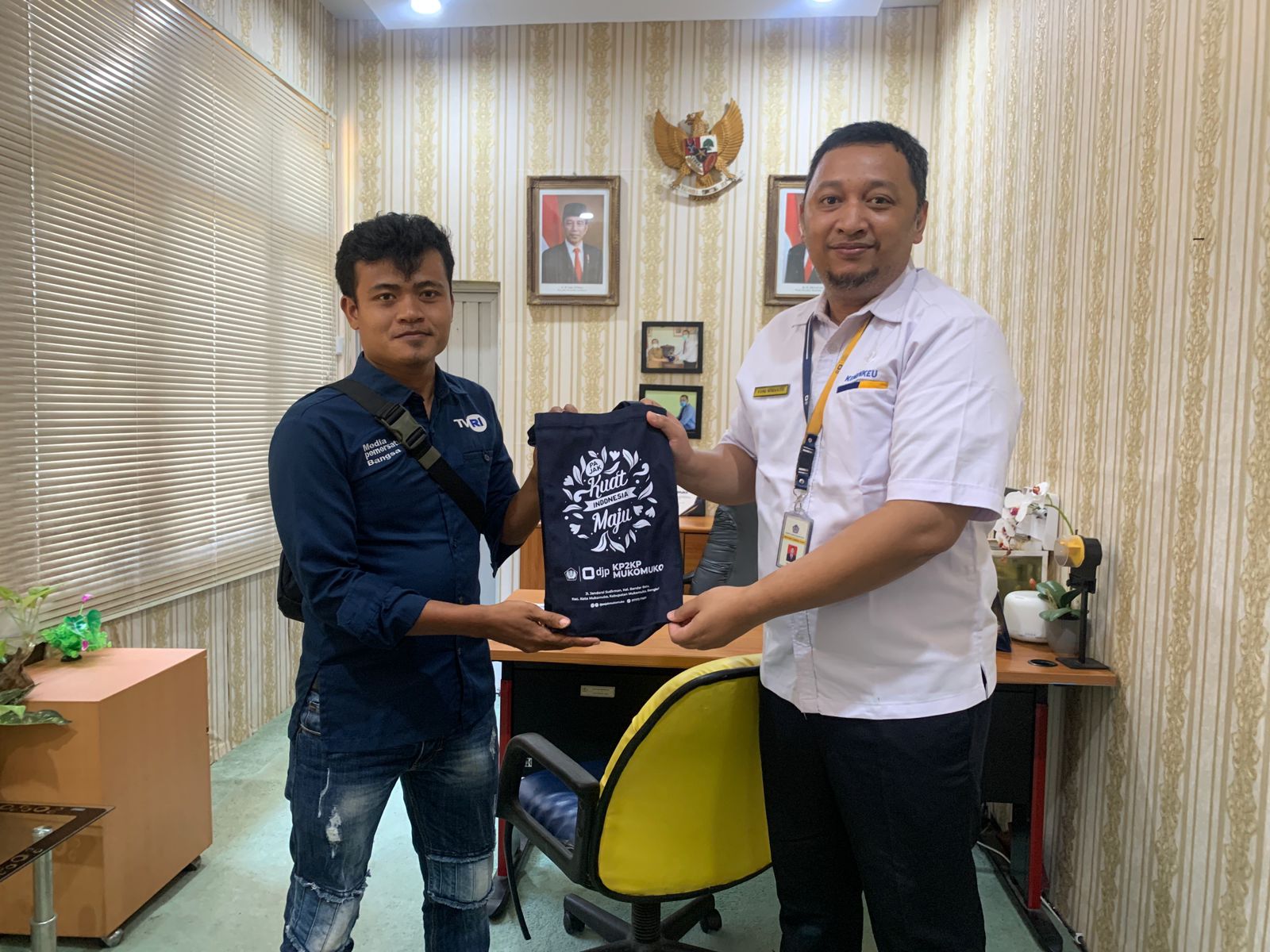 Kepala Kantor Pelayanan, Penyuluhan, dan Konsultasi Perpajakan (KP2KP) Mukomuko menerima kunjungan dari kontributor stasiun Televisi Republik Indonesia (TVRI) Bengkulu di ruang kepala KP2KP Mukomuko, Jalan Padang-Bengkulu, Kelurahan Bandar Ratu, Kecamatan Kota Mukomuko, Kabupaten Mukomuko, Provinsi Bengkulu (29/1).