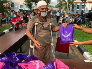 Proses pembagian bingkisan tetap memperhatikan protokol pencegahan penyebaran Covid-19. Panitia sudah menyiapkan jalur khusus bagi masyarakat agar dapat mengambil bingkisan secara mandiri dan teratur. Tak lupa panitia juga menyiapkan hand sanitizer untuk masyarakat yang datang. Selain dilaksanakan di depan kantor, pembagian bingkisan juga dilaksankan secara jemput bola dengan mengantarkan bingkisan kepada masyarakat yang membutuhkan secara langsung.